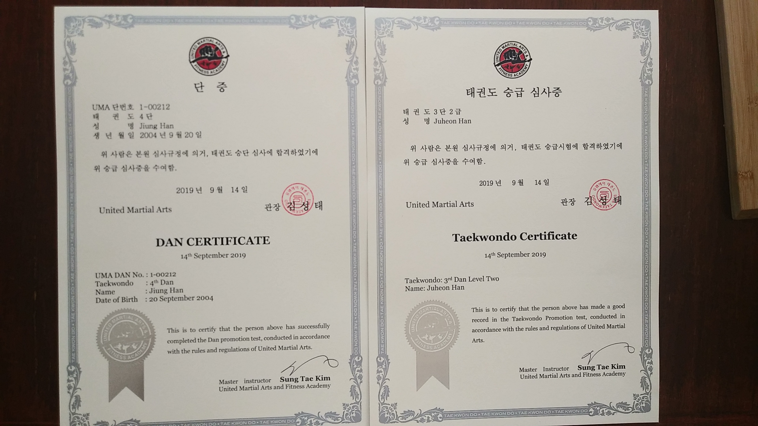 10년 태권도 다니고 지웅이 드디어 4단. 축하!!