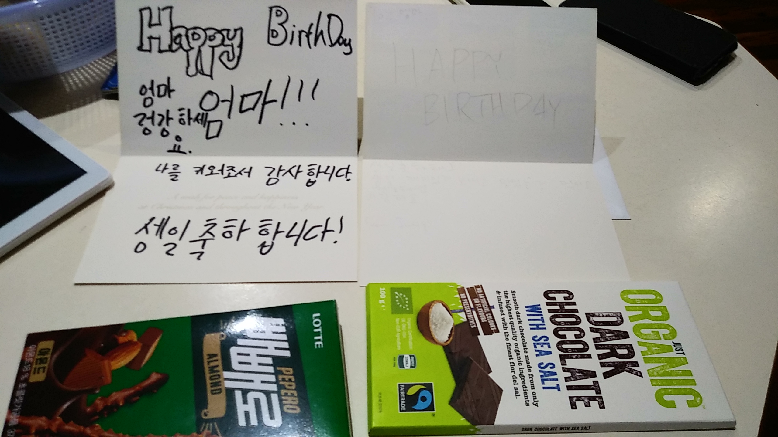 인화엄마 생일선물. 케잌 들고오다 하트모양 망침.ㅠㅠ