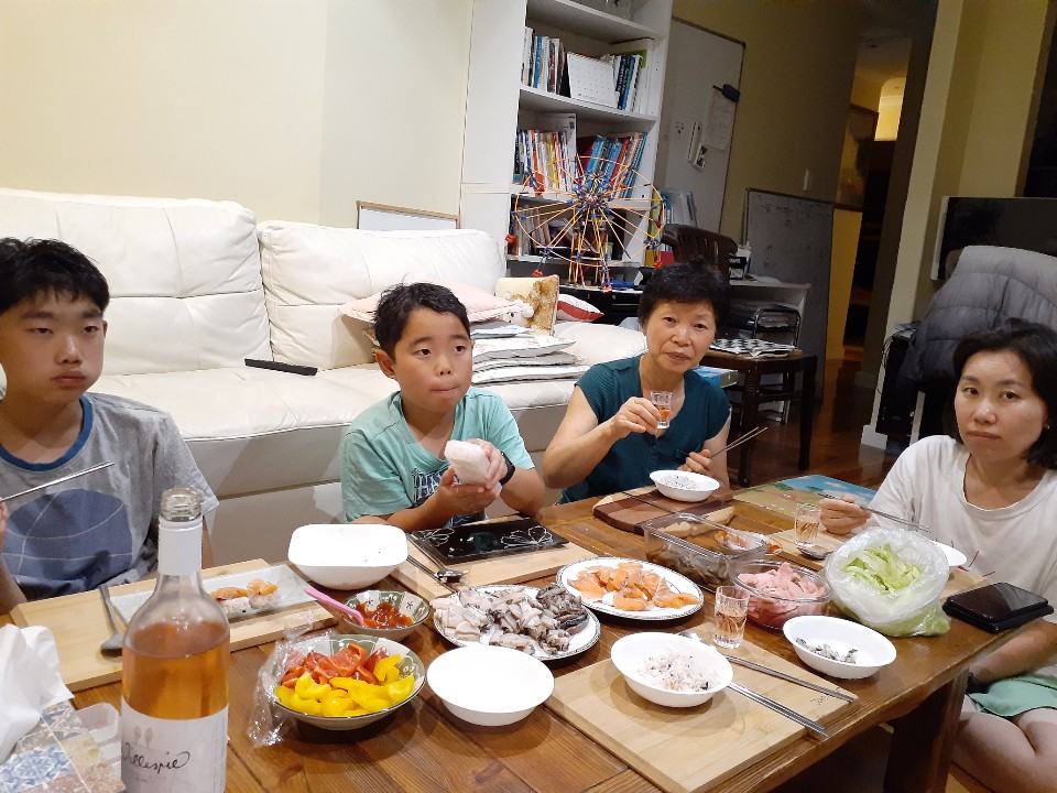 아들들은 전복이랑 연어 초밥 알아서 만들어먹기