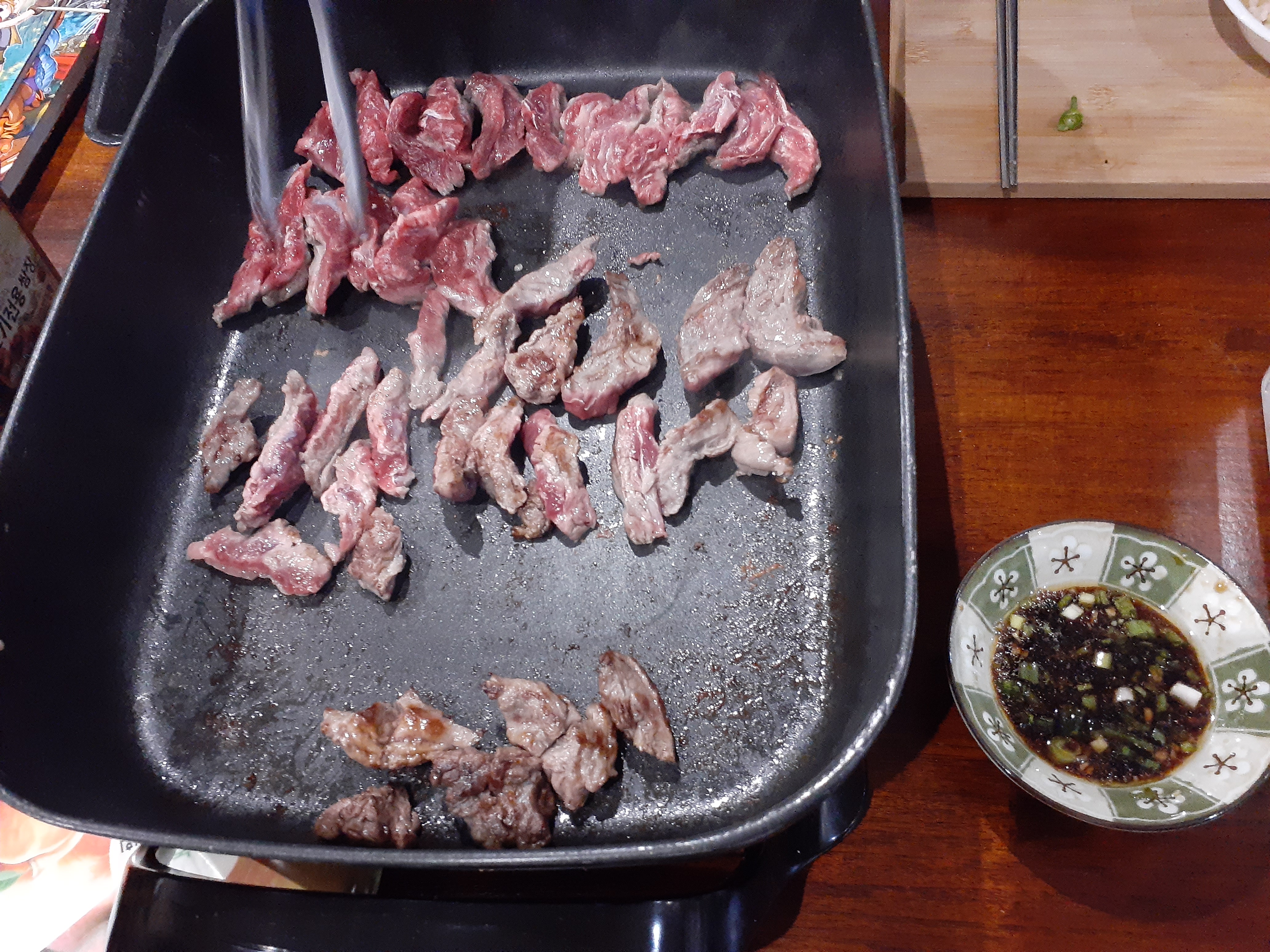 아빠가 만든 백종원 만능간장에 갈비살 구워먹기.