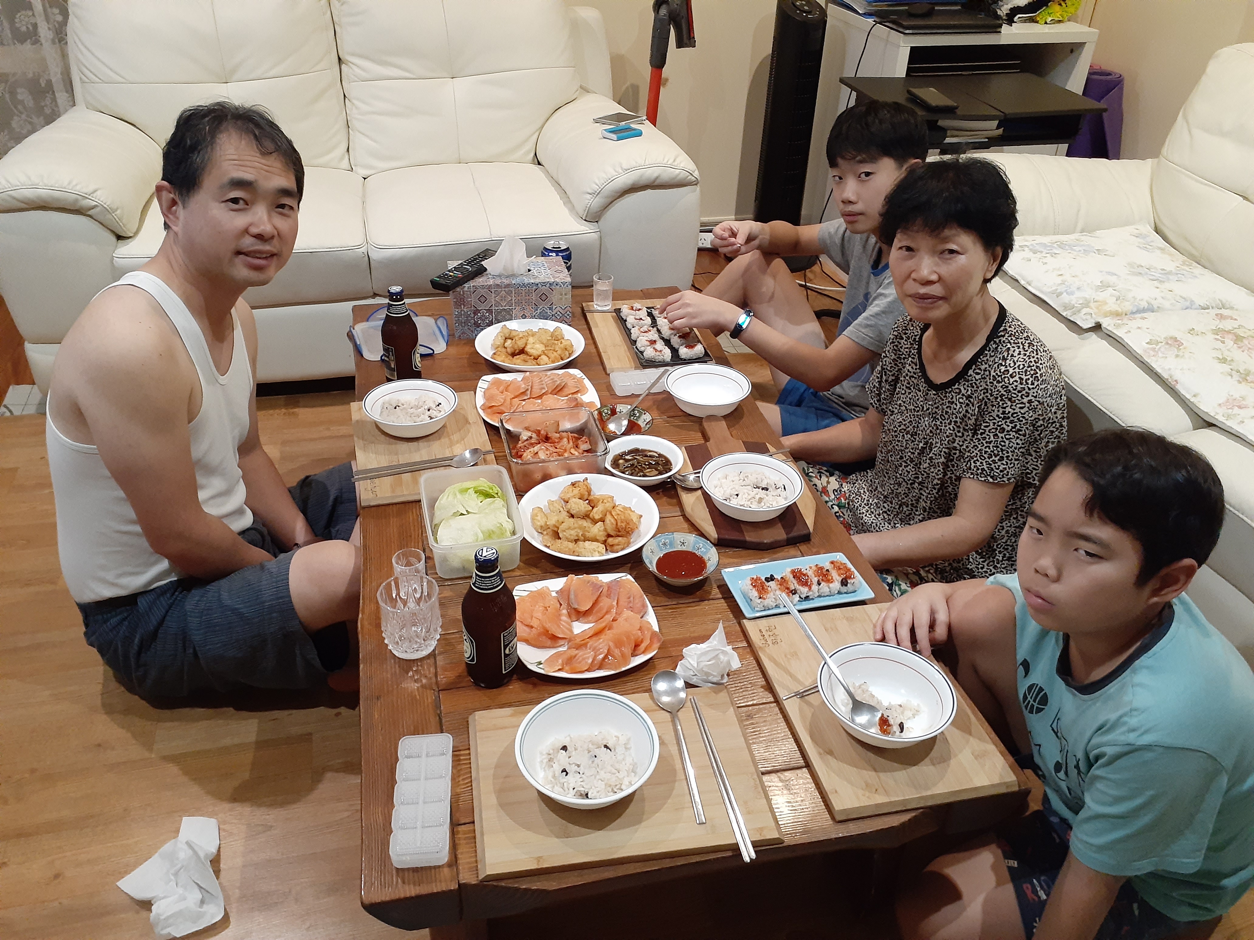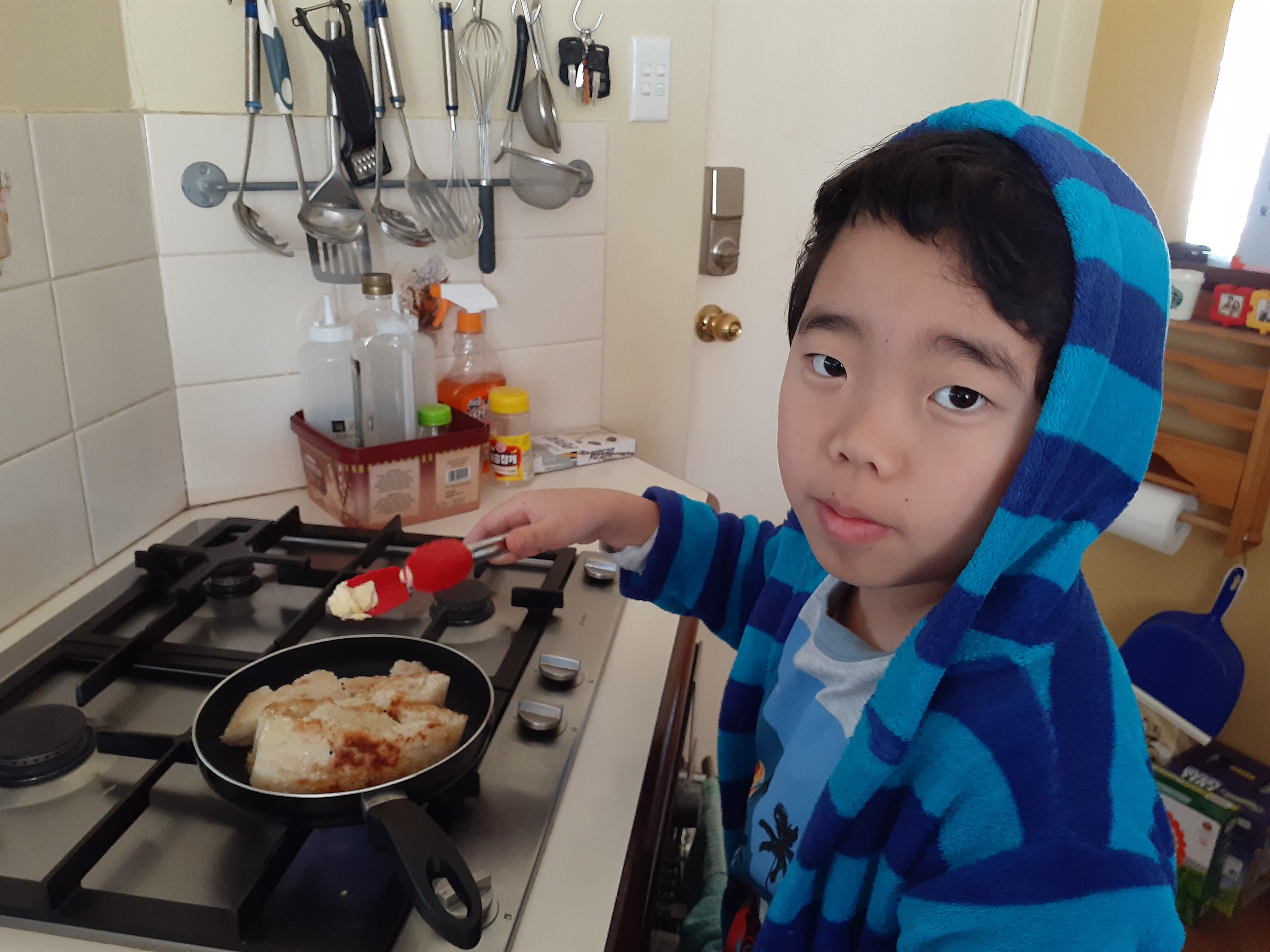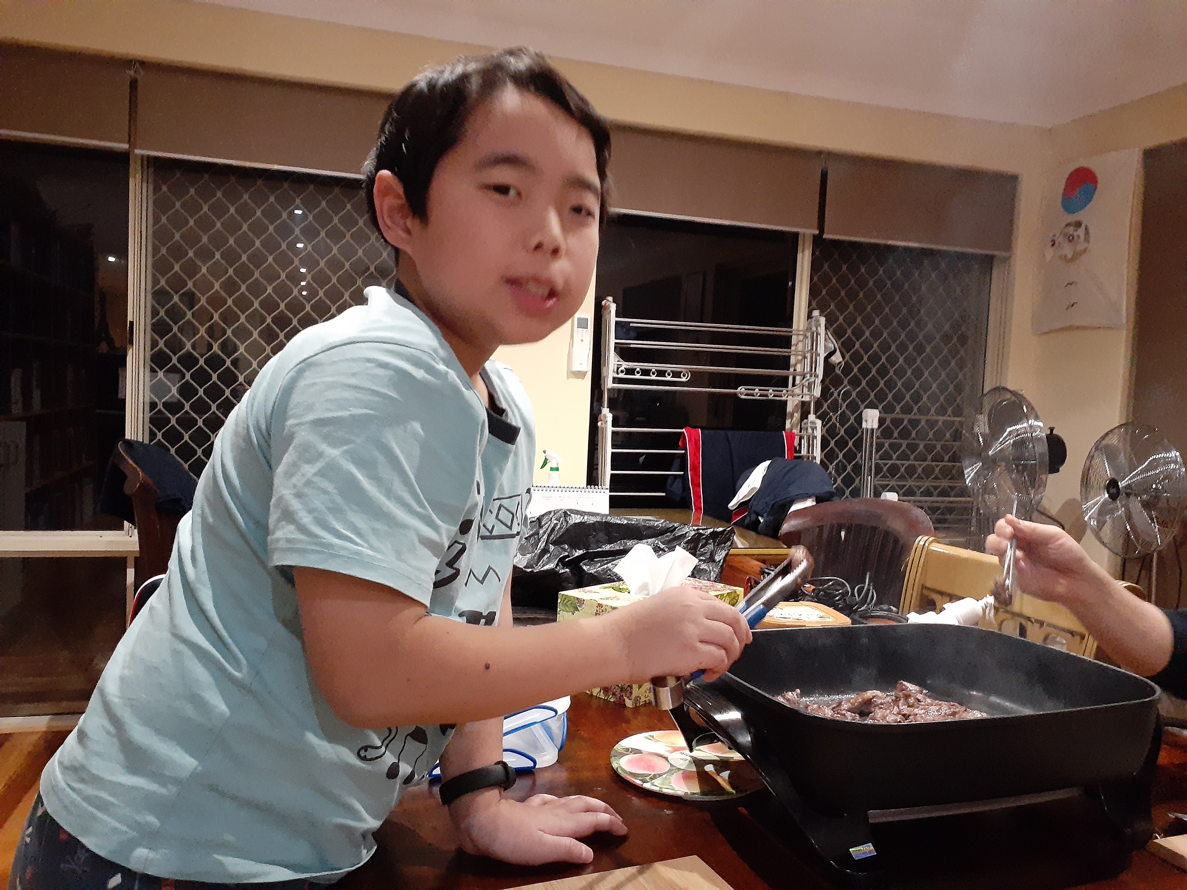 엄마아빠도 먹으라고 자기가 굽는단다...ㅋㅋ