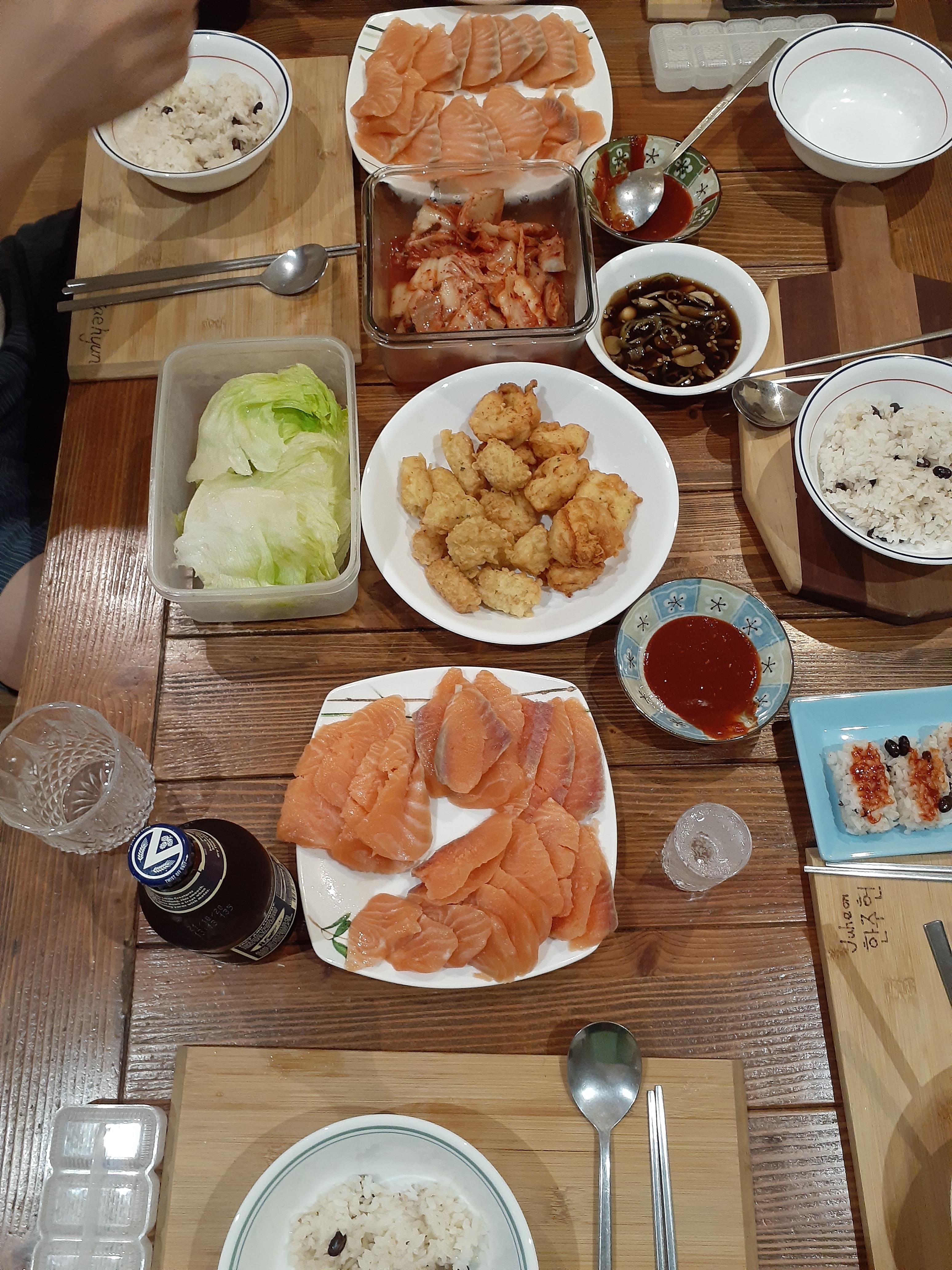 할머니께서 튀겨주신 오징어 튀김과 함께.
