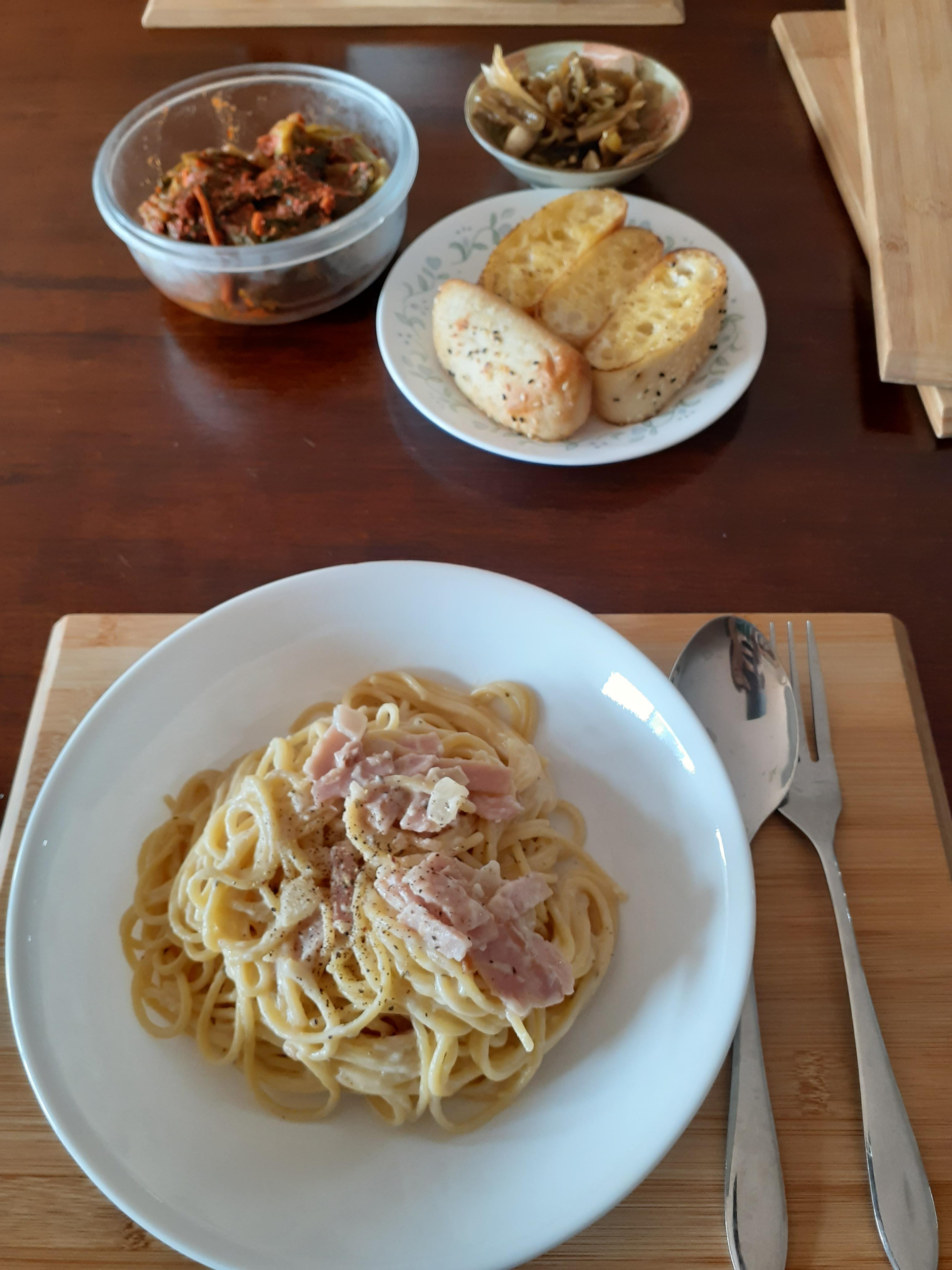엄마랑 오랜만에 느끼한 크림파스타로 점심.