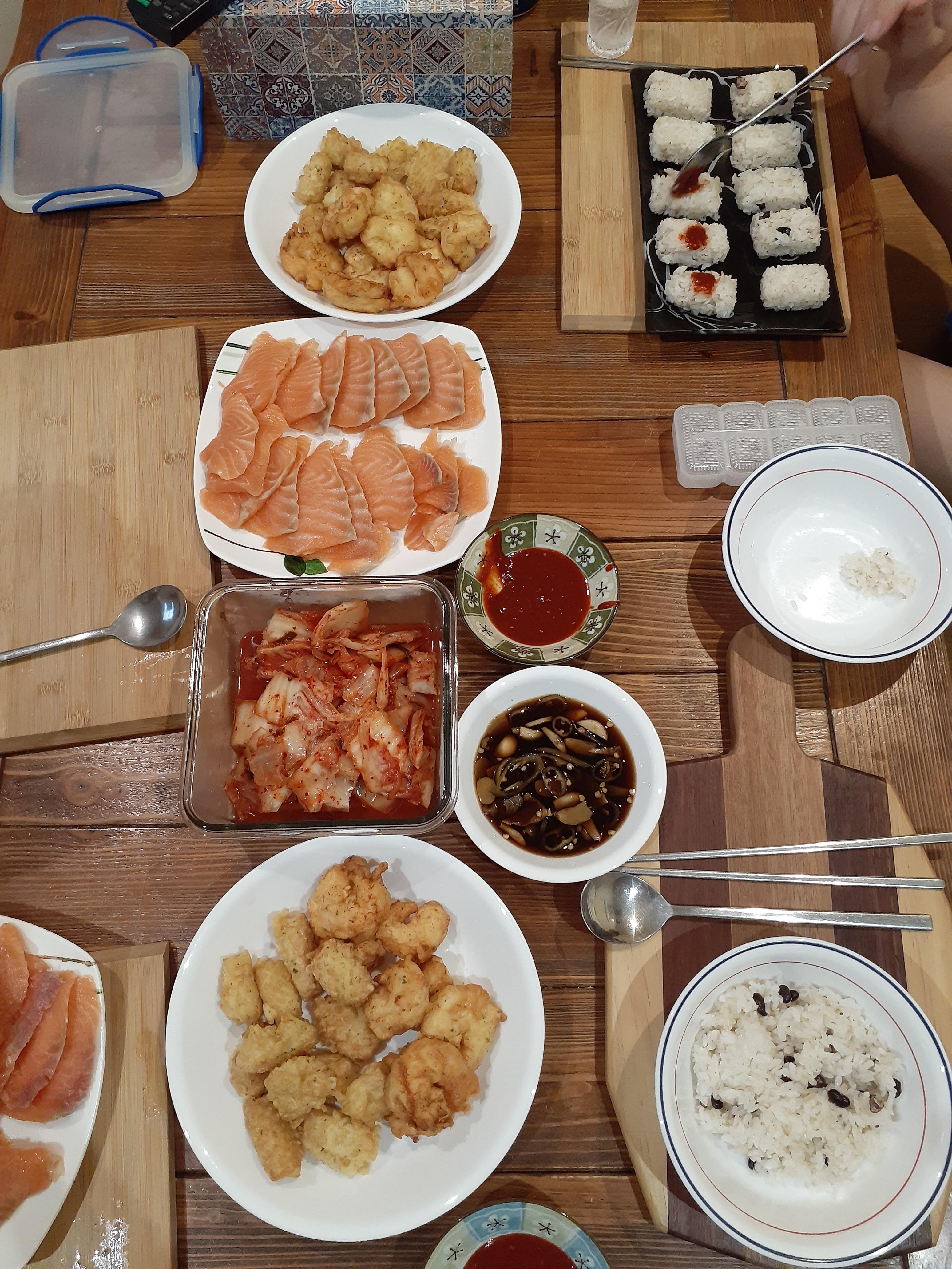 할머니께서 튀겨주신 오징어 튀김과 함께.