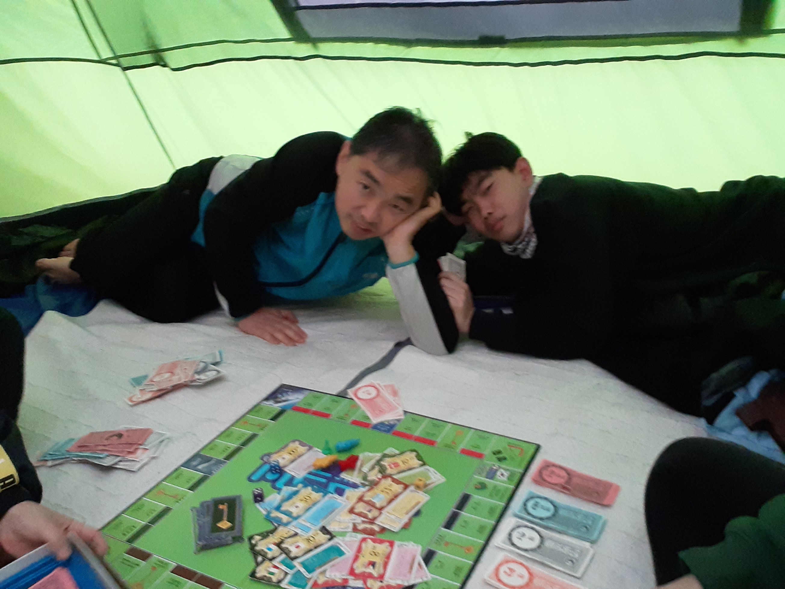 텐트에서 부르마블도 하고~