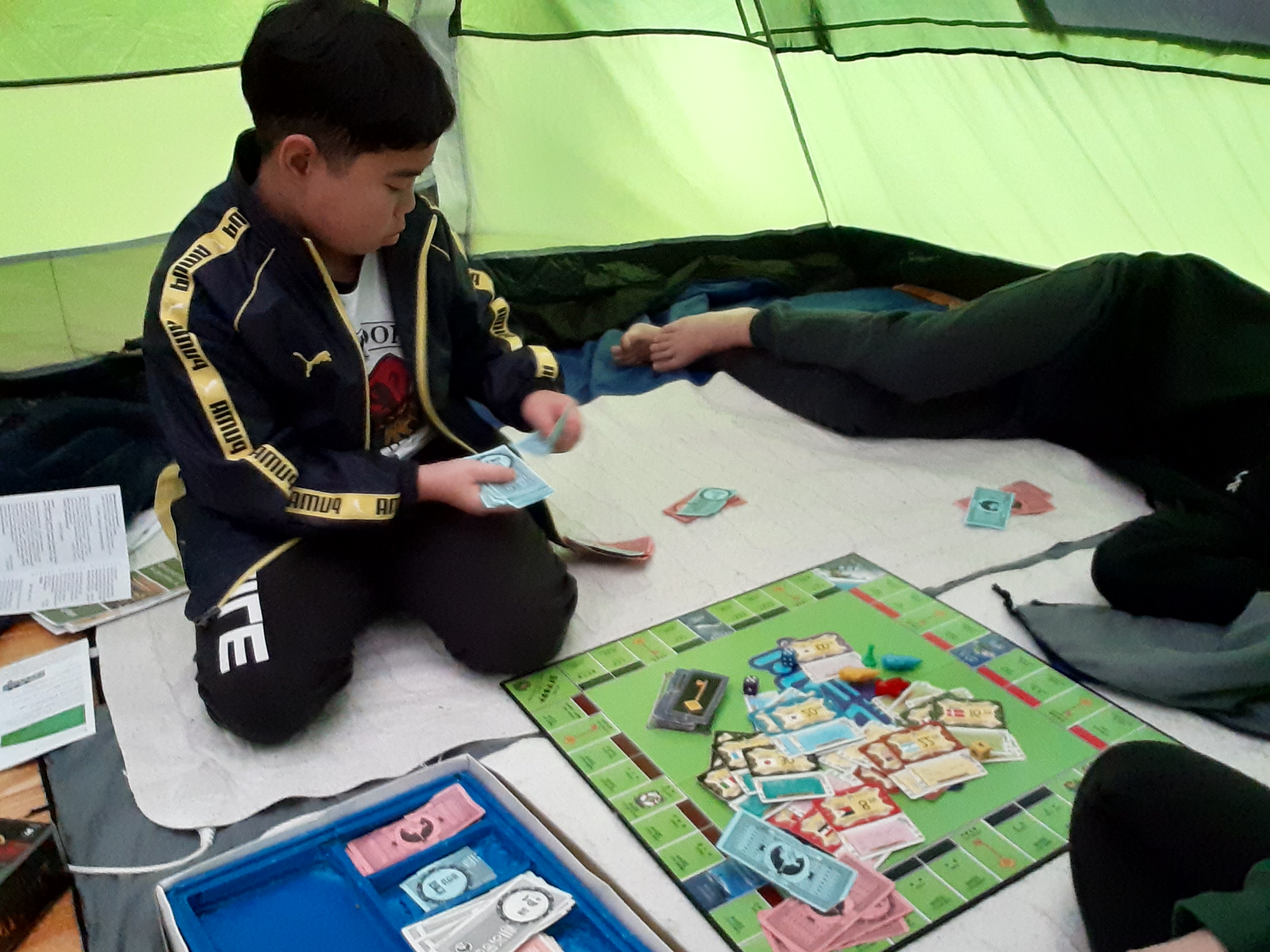 텐트에서 부르마블도 하고~