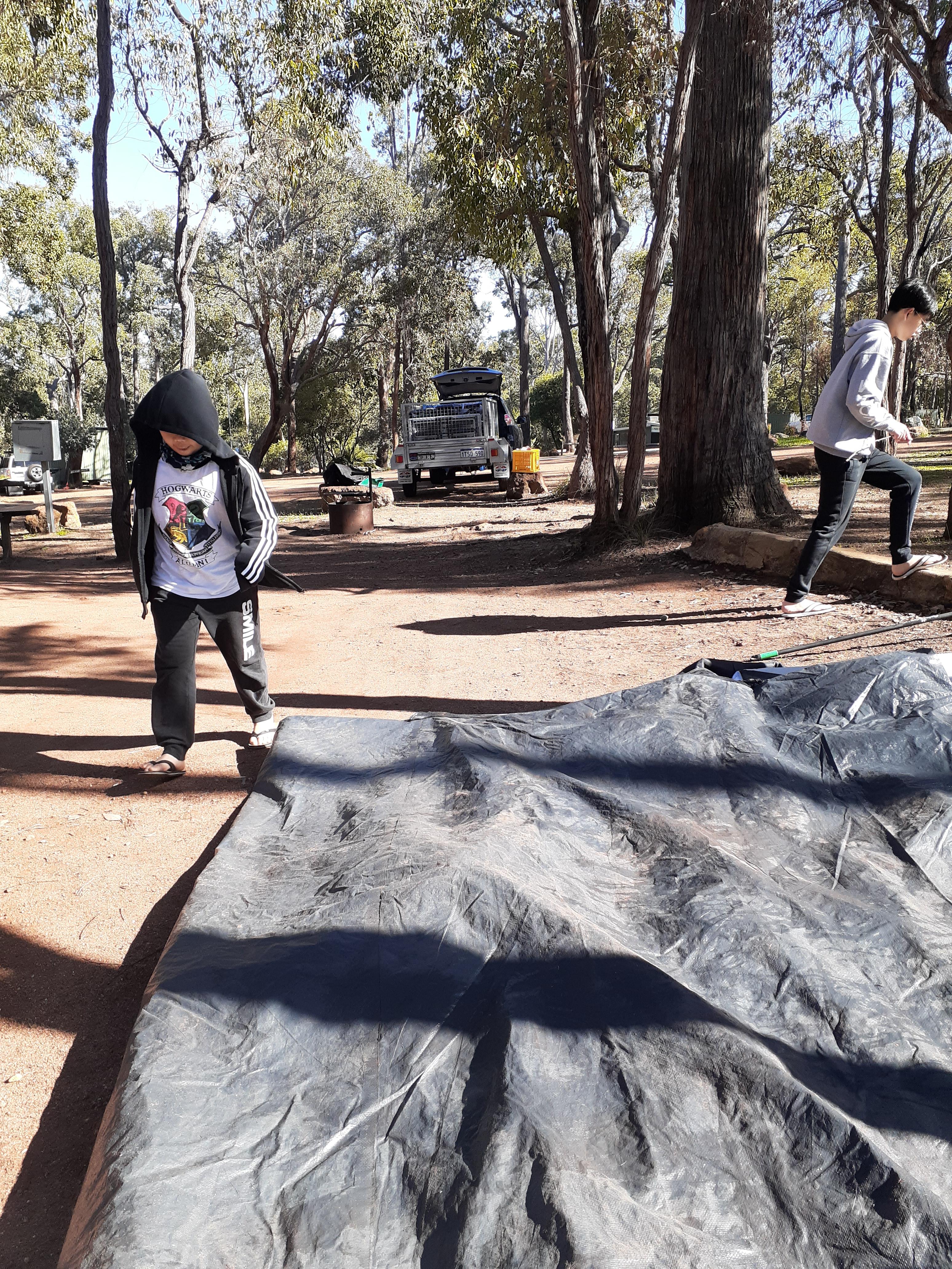 가제보 걷는 중. 텐트안팎. 가제보 안 짐 정리