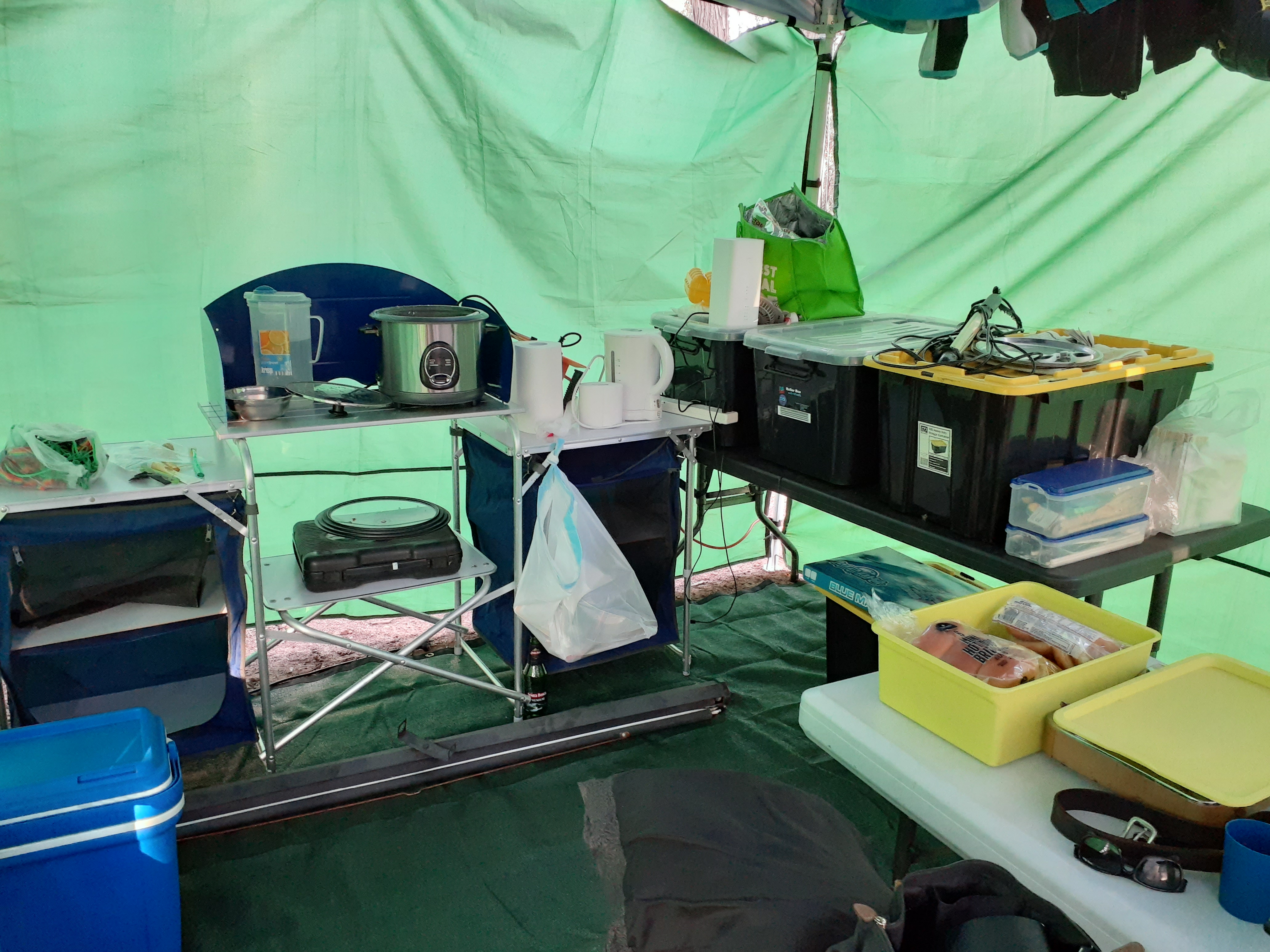 한면을 텐트로 연결하니 가제보 한면을 쓸 수 없어서 가제보가 많이 좁아짐.