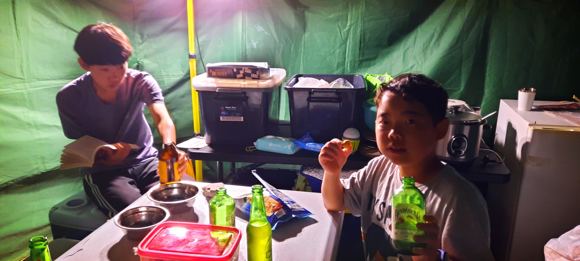 3부자 캠핑 마지막 저녘이 이렇게 지나간다.