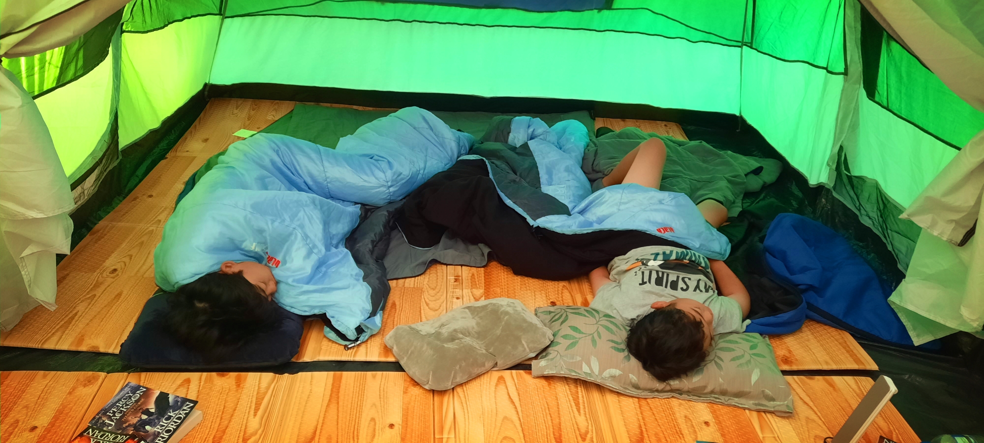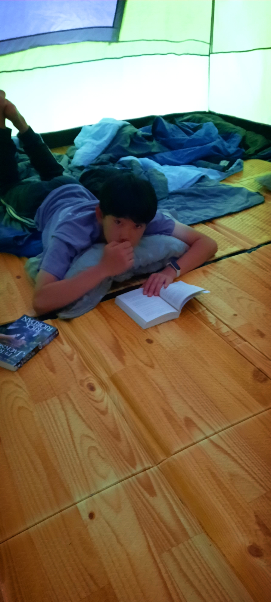 캠핑장 돌아와서 샤워하고 지웅이는 독서중