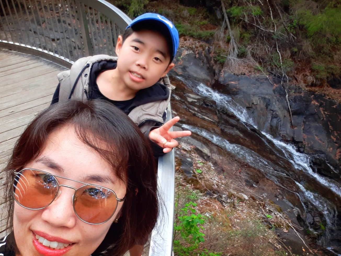 속이 안 좋은 지웅이는 캠핑장에 쉬라고 남겨두고 우리만 산책. Beedelup 폭포까지 오라 가는 데는 20~30분, 호수를 삥 돌아 산길로 오면 1시간 걸린단다. 실제 우리는 천천히 사진도 찍고 해서 1시간반정도 걸렸다. 주헌이가 엄마 패딩 뺏어 입어서 엄마는 아빠 패딩으로 ㅋ