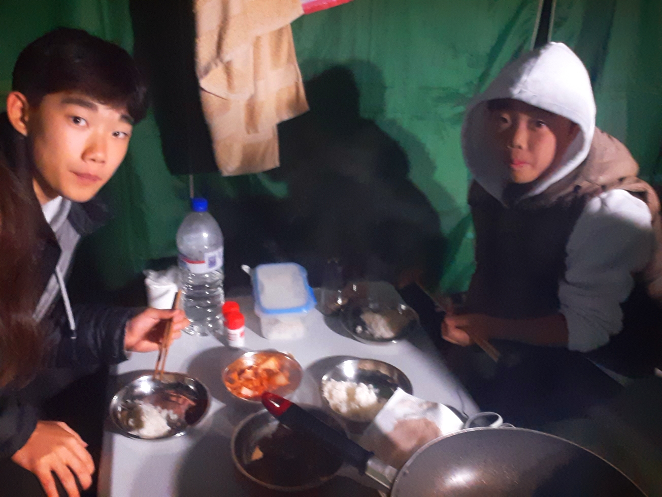 한밤중에 화장실 갔다오면서 바라본 우리 텐트