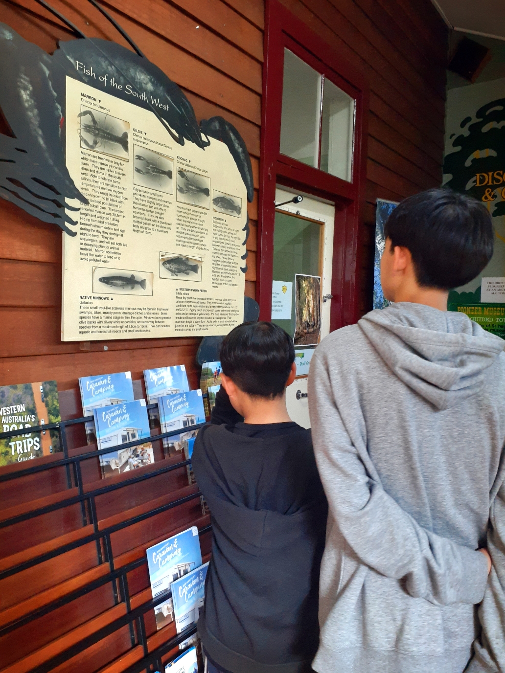 일단 바로 근처에 있는 비지터 센터로 가보자. 안잡히는 trout가 아쉬운지 Fish of the South West를 살펴보는 지웅.주헌.
