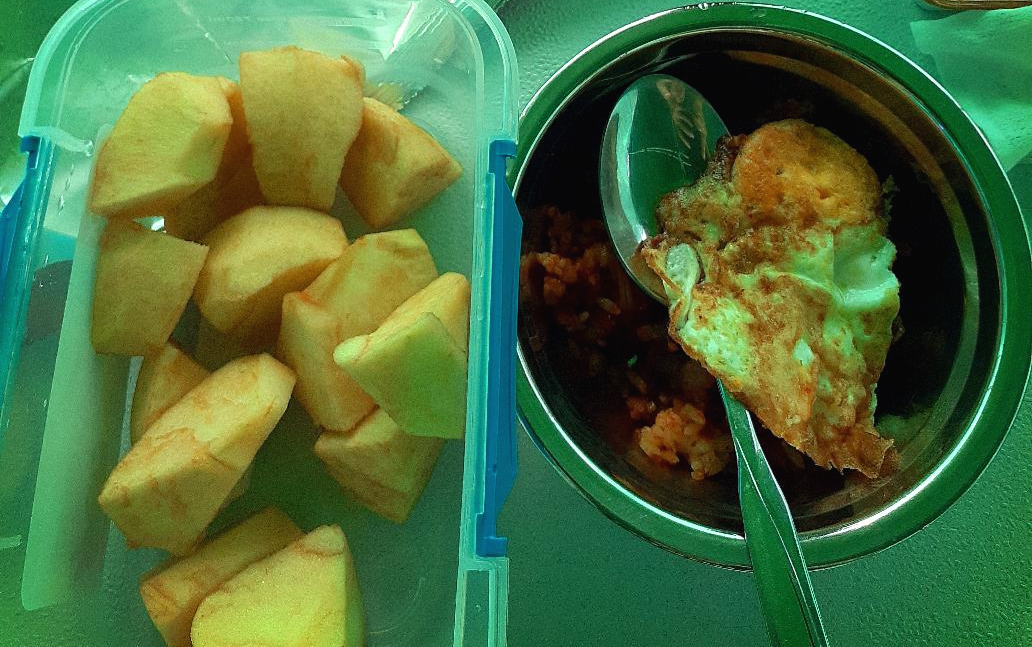 아침은 간단히 김치볶음밥