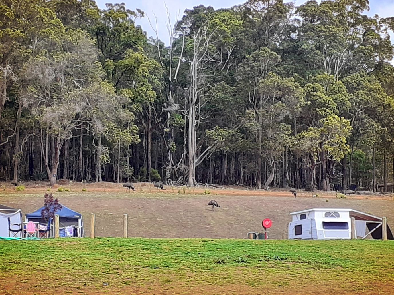 캠핑장 언덕배기에 등장한 에뮤들.