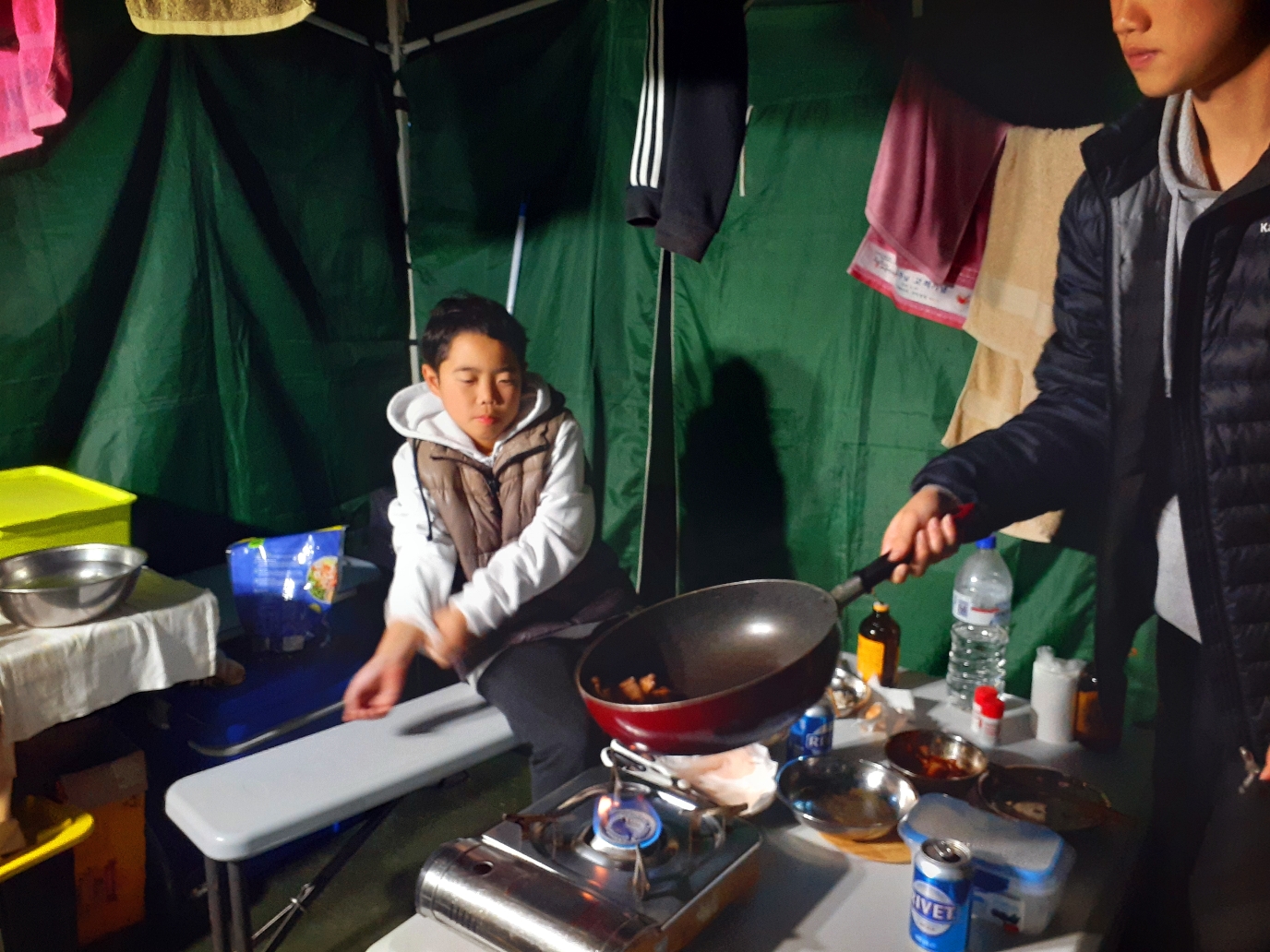 한밤중에 화장실 갔다오면서 바라본 우리 텐트