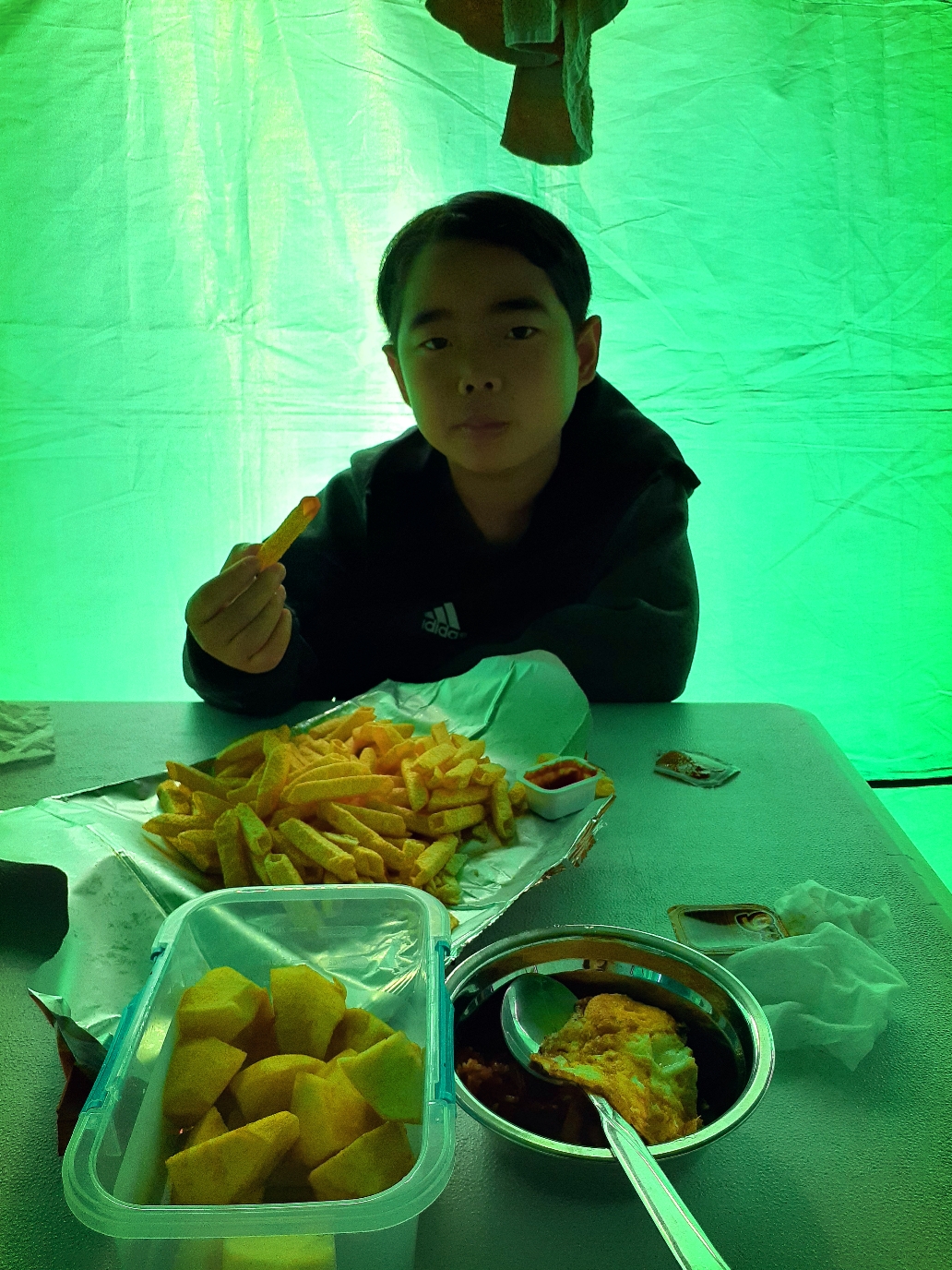 주헌이는 벌써 밥먹고 후식 타임.