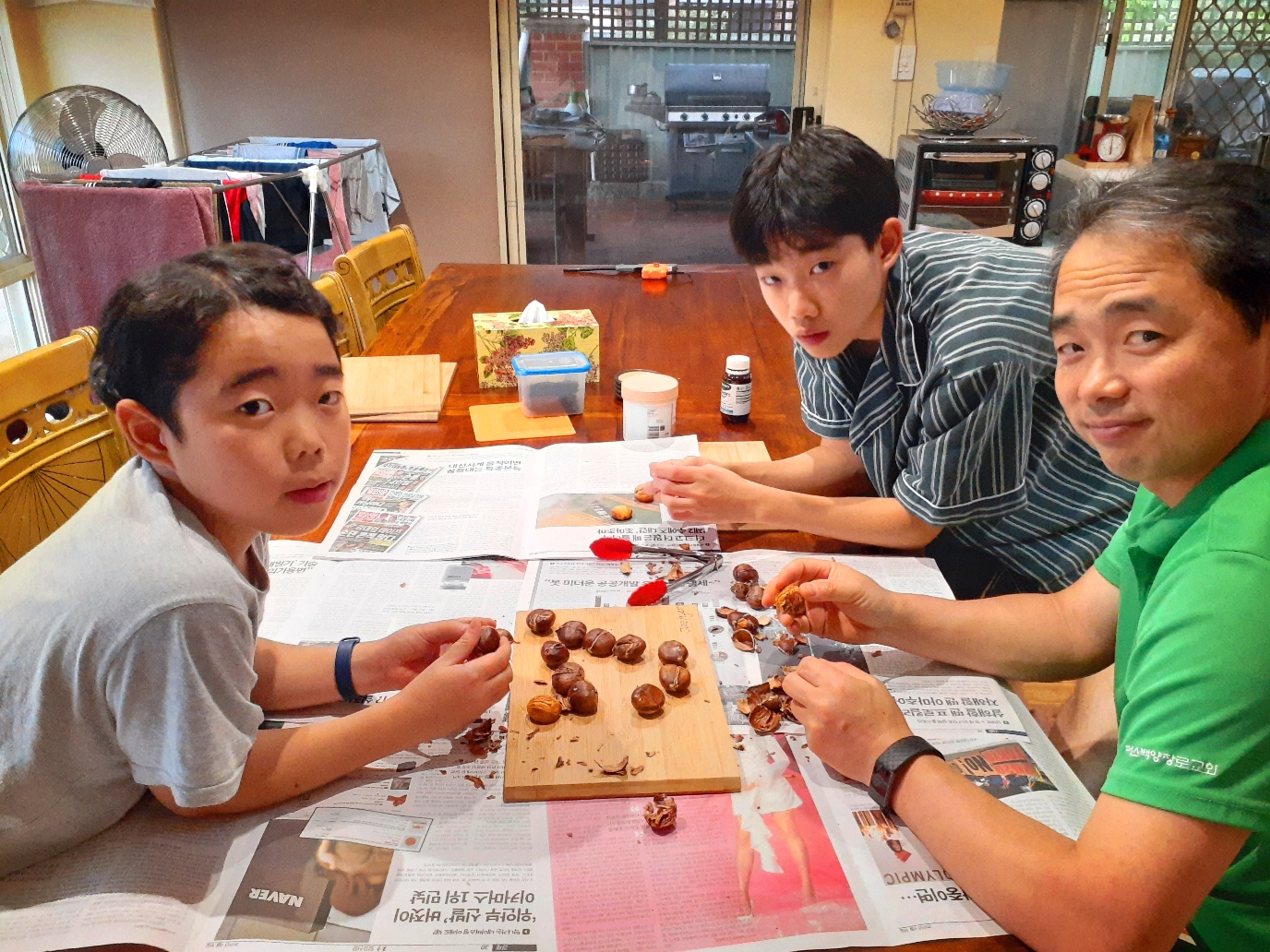 에어프라이에 돌린 군밤 까먹는 삼부자.