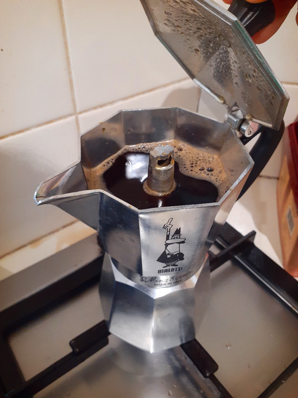 원래 4인용이지만 둘이 진한 커피를 마시지 않으니 연하게 만들어서...