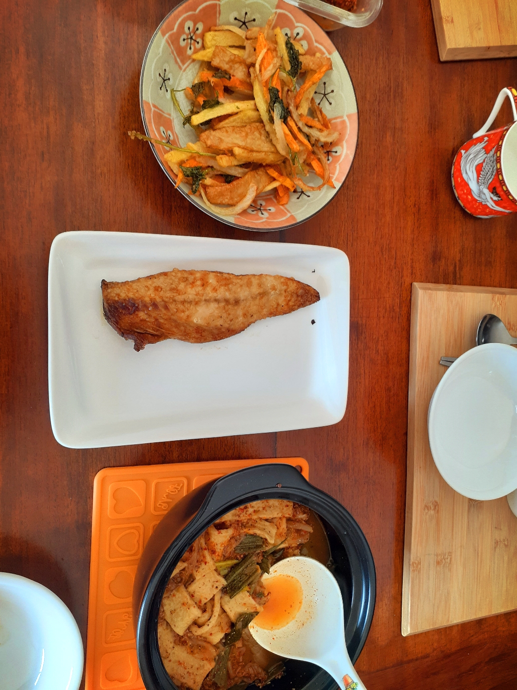 밀키트 데우기만 하면 됨. 대파랑 오이만 썰어서 간단히 저녁 해결.
