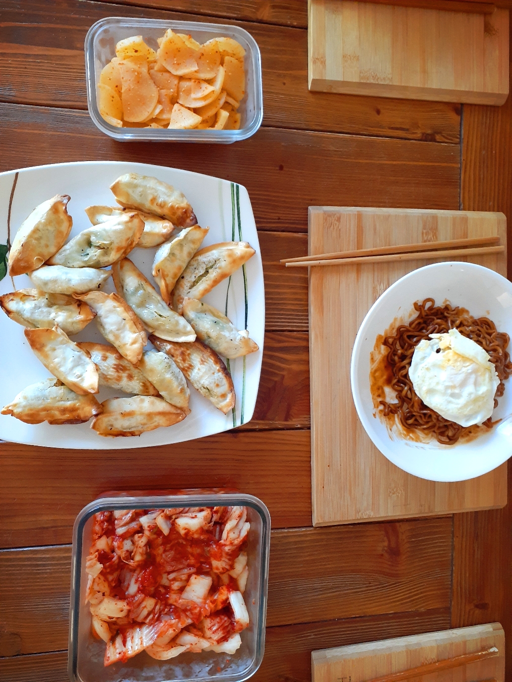 밀키트 데우기만 하면 됨. 대파랑 오이만 썰어서 간단히 저녁 해결.