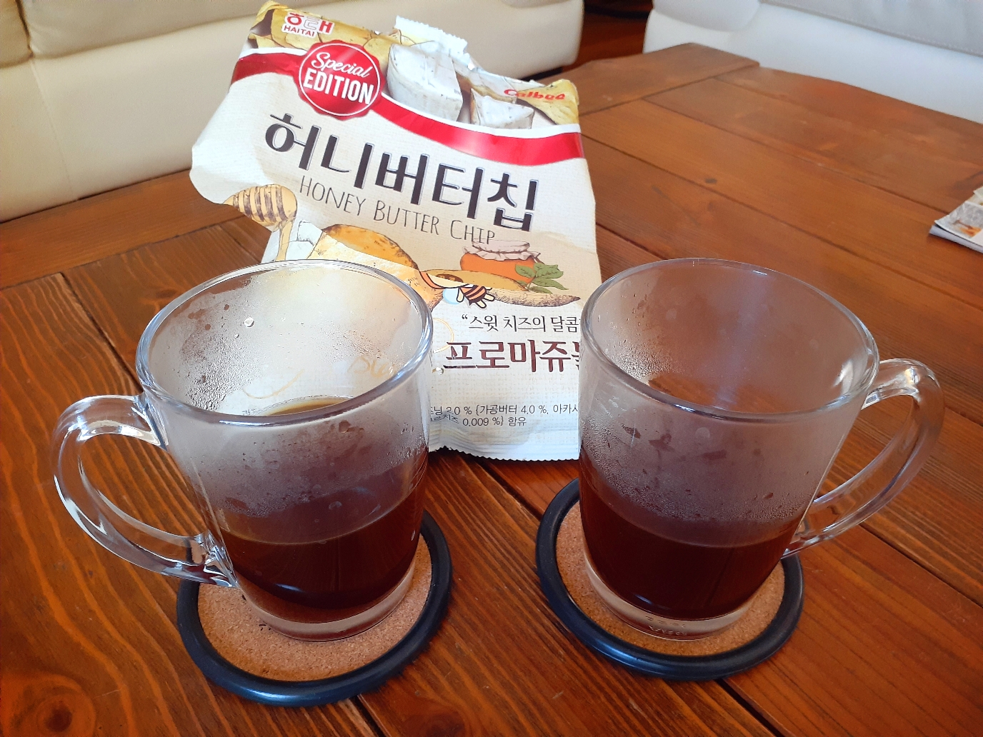 모집사님께서 오다가다 남겨놓으신 허니버터칩이랑.ㅋㅋ