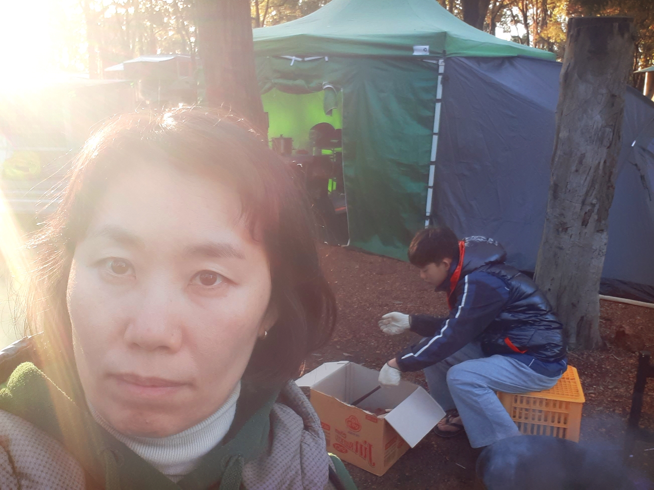 엄마는 지웅이랑 텐트 배경으로 셀카놀이 중