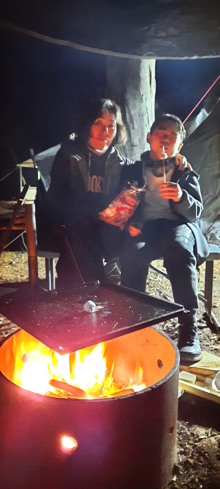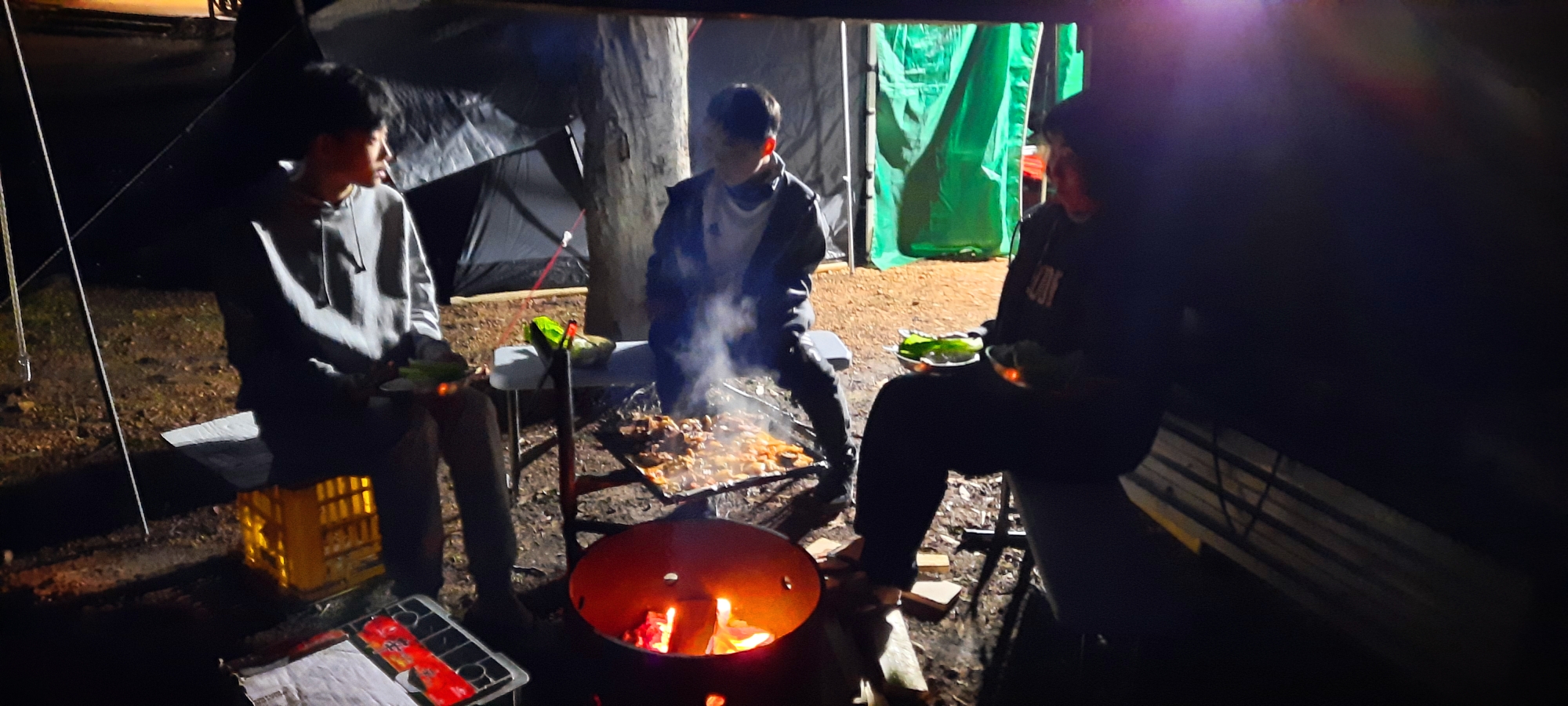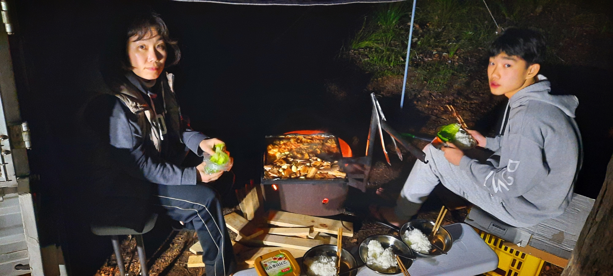 어제 못피운 불 피울려고 혹시 비 올거 대비해서 파이어핏위에 추가로 타프를 쳤다.