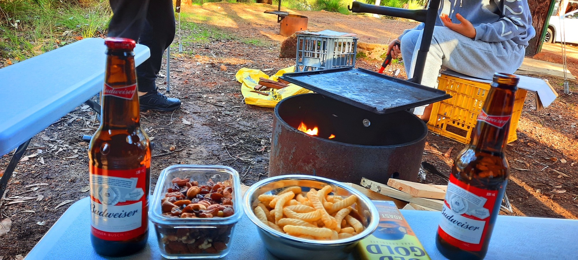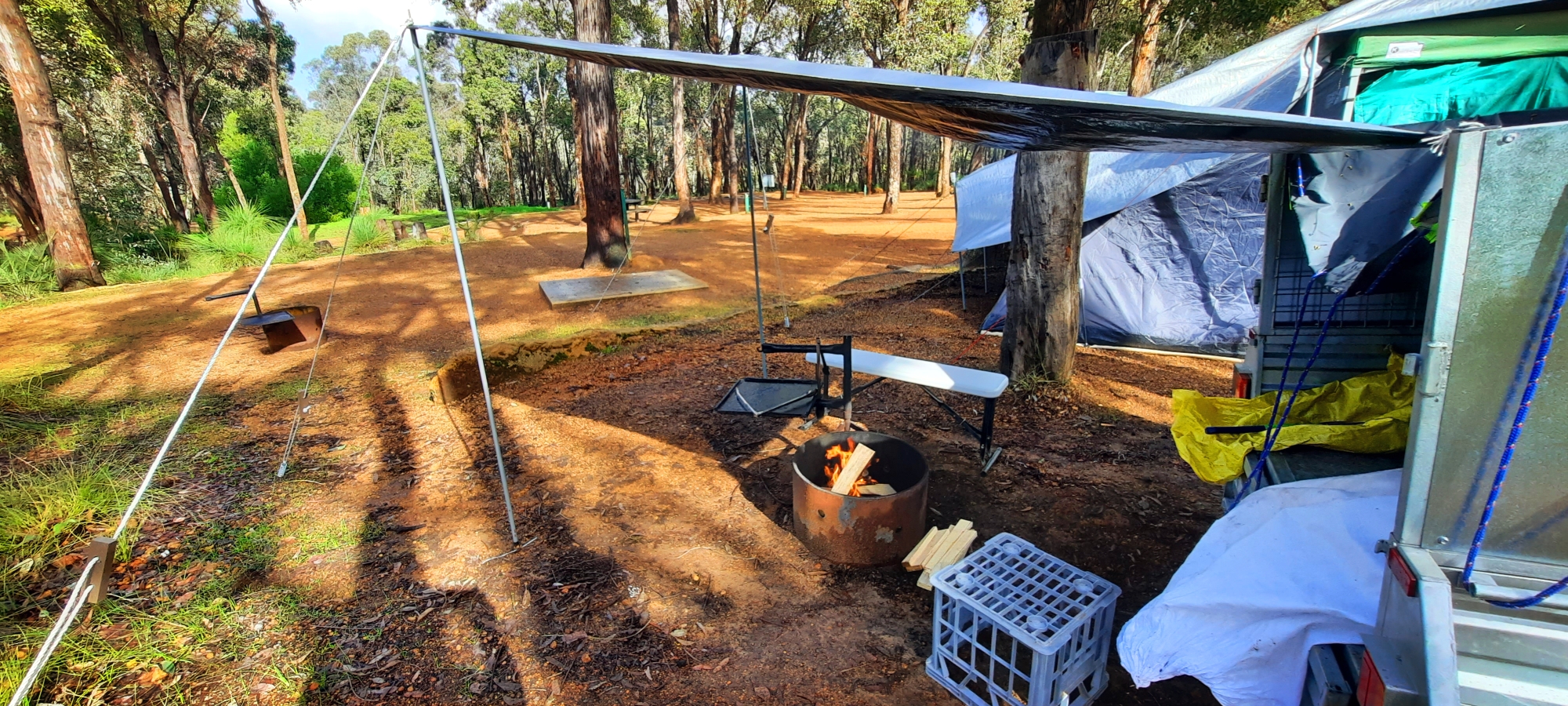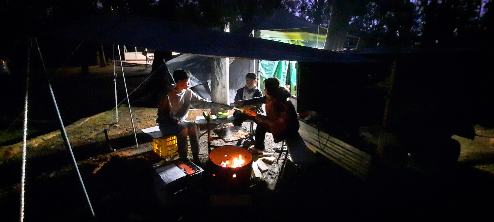 어제 못피운 불 피울려고 혹시 비 올거 대비해서 파이어핏위에 추가로 타프를 쳤다.