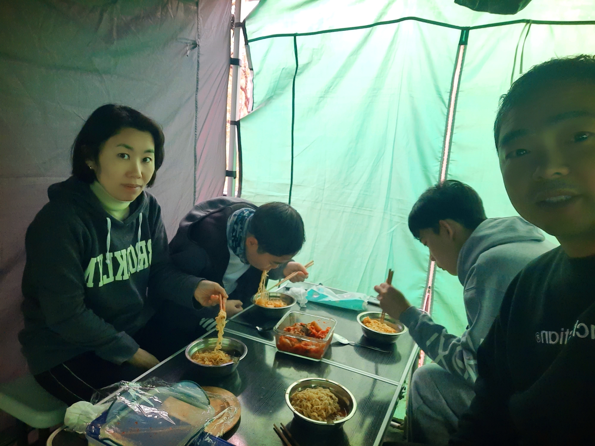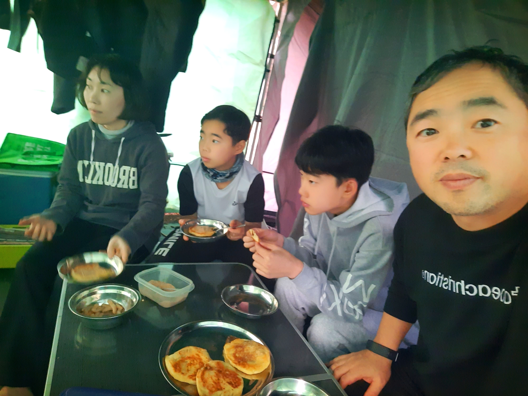 빠질수 없는 호떡 타임. 열심히 보고 있는건 라켓소년단