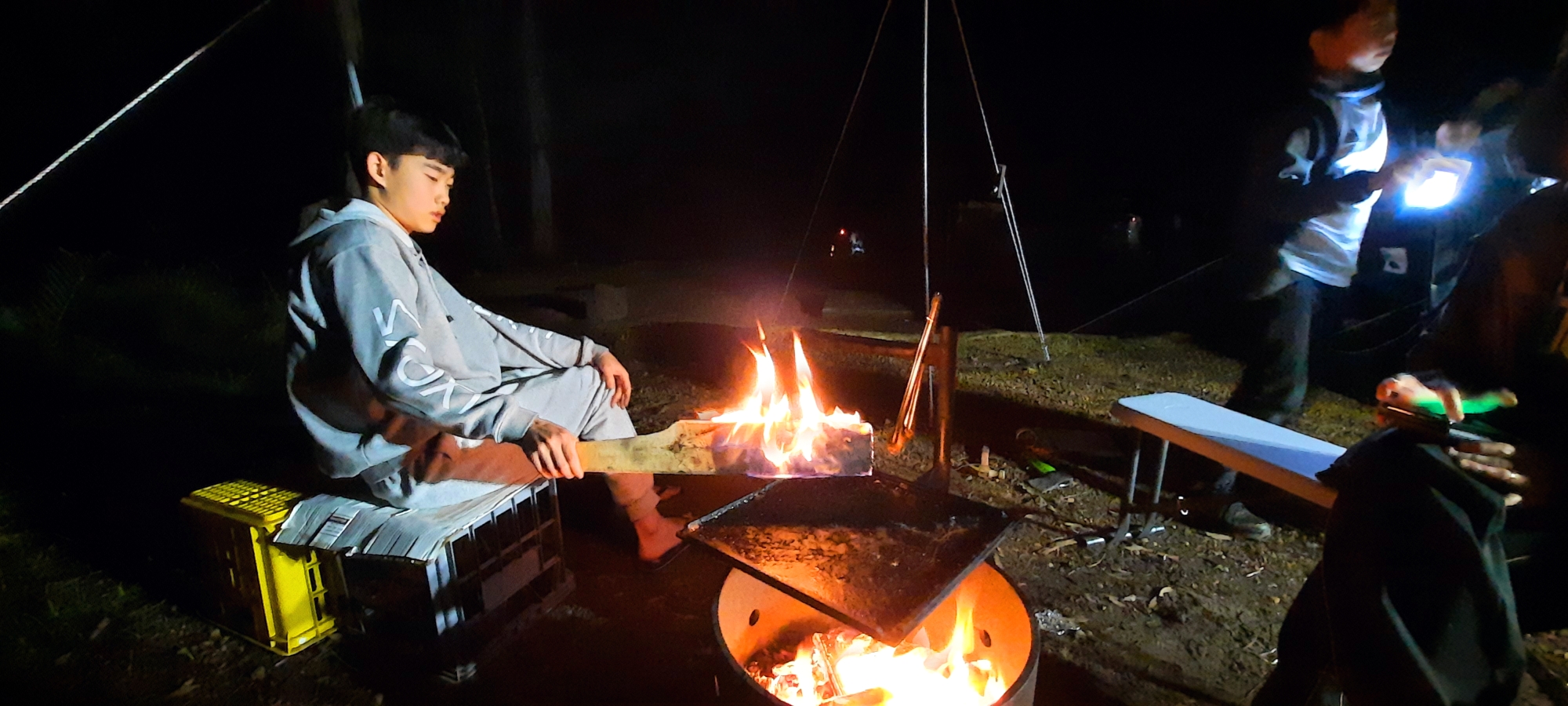 지웅이는 마지막 장작으로 불쇼~~.