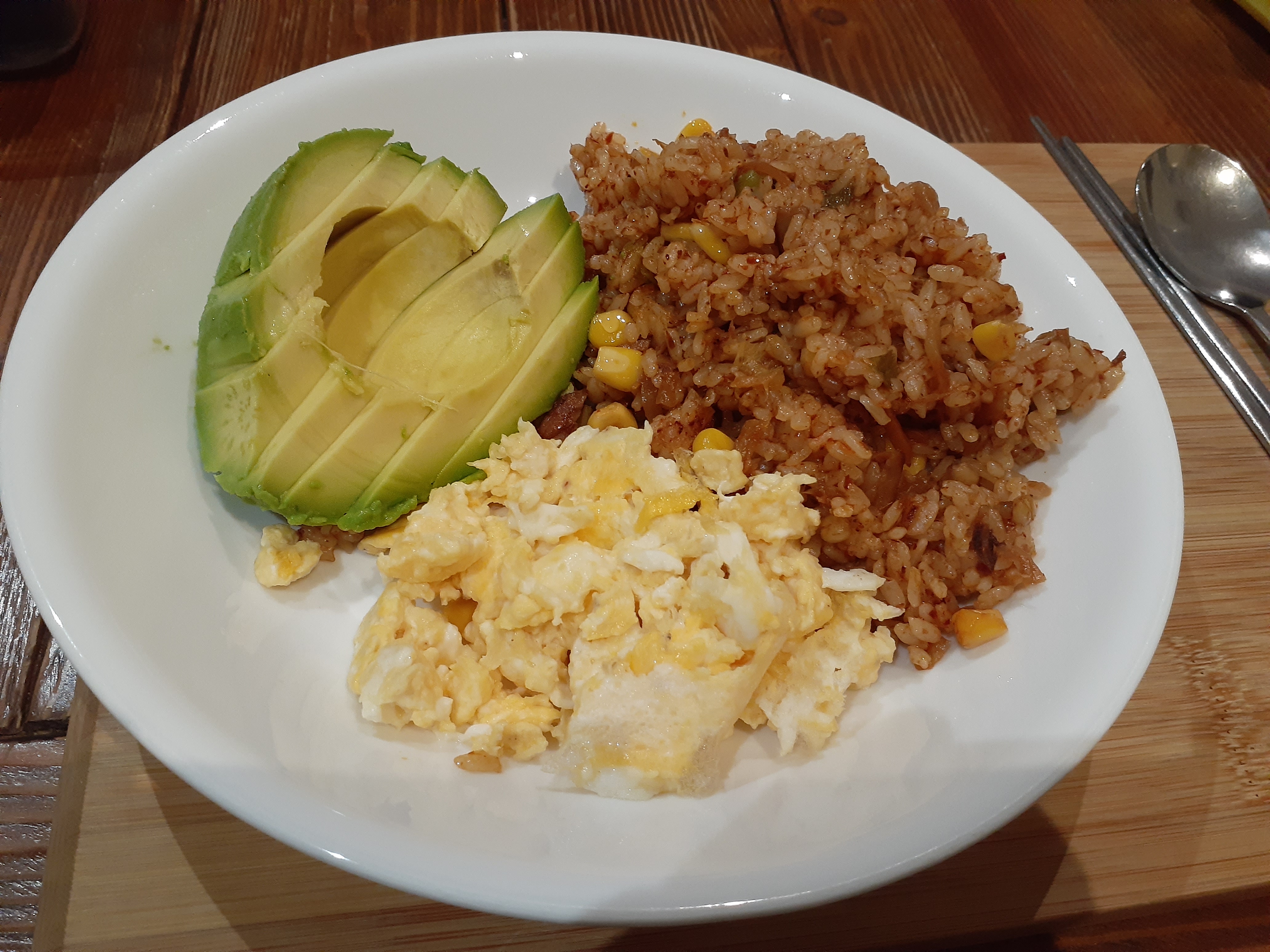 어느날 김치볶음밥~에 스크램블에그랑 아보카도 함께