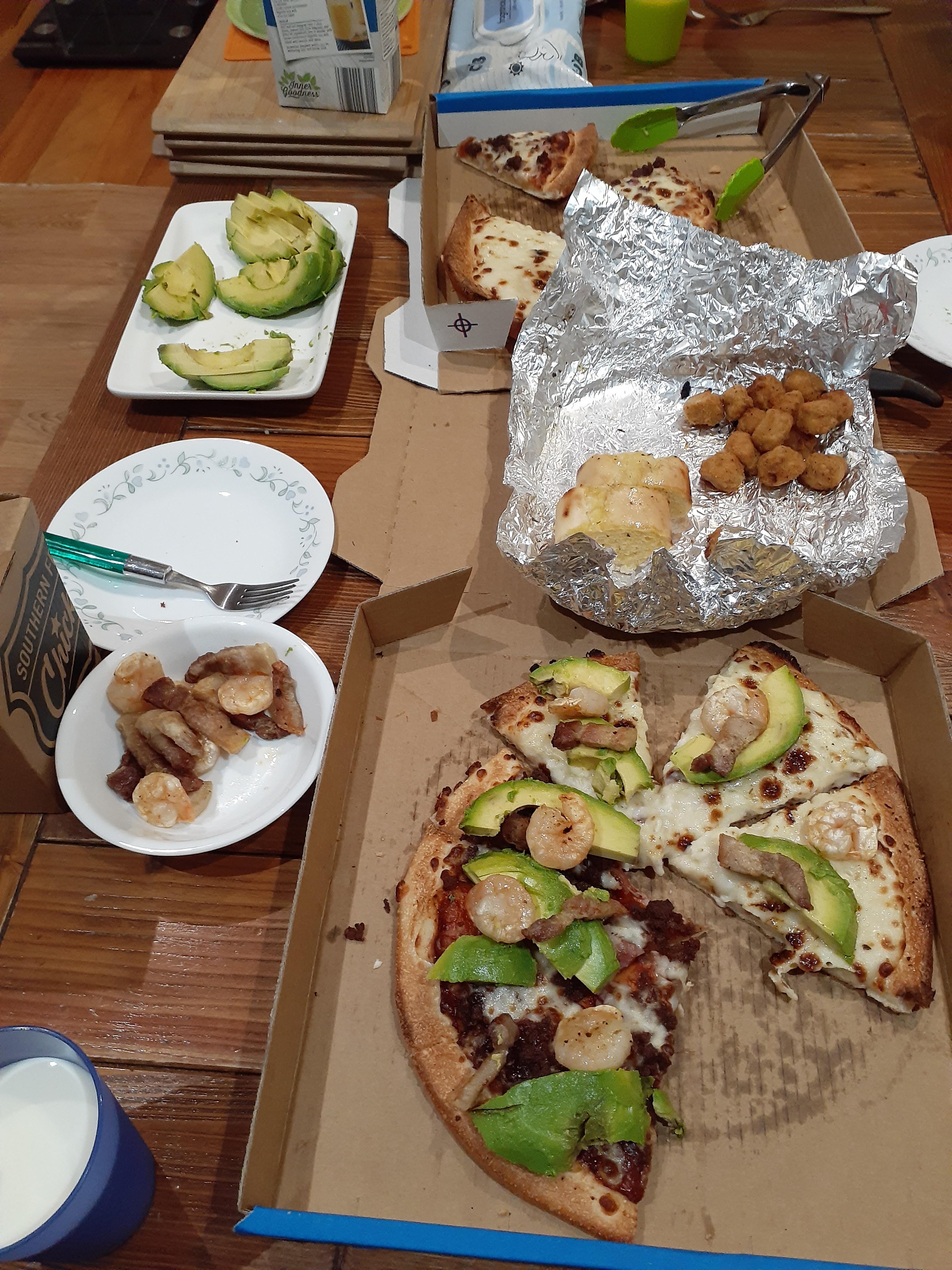 재현아빠가 새우도 구워서 추가 토핑으로 올려먹음.