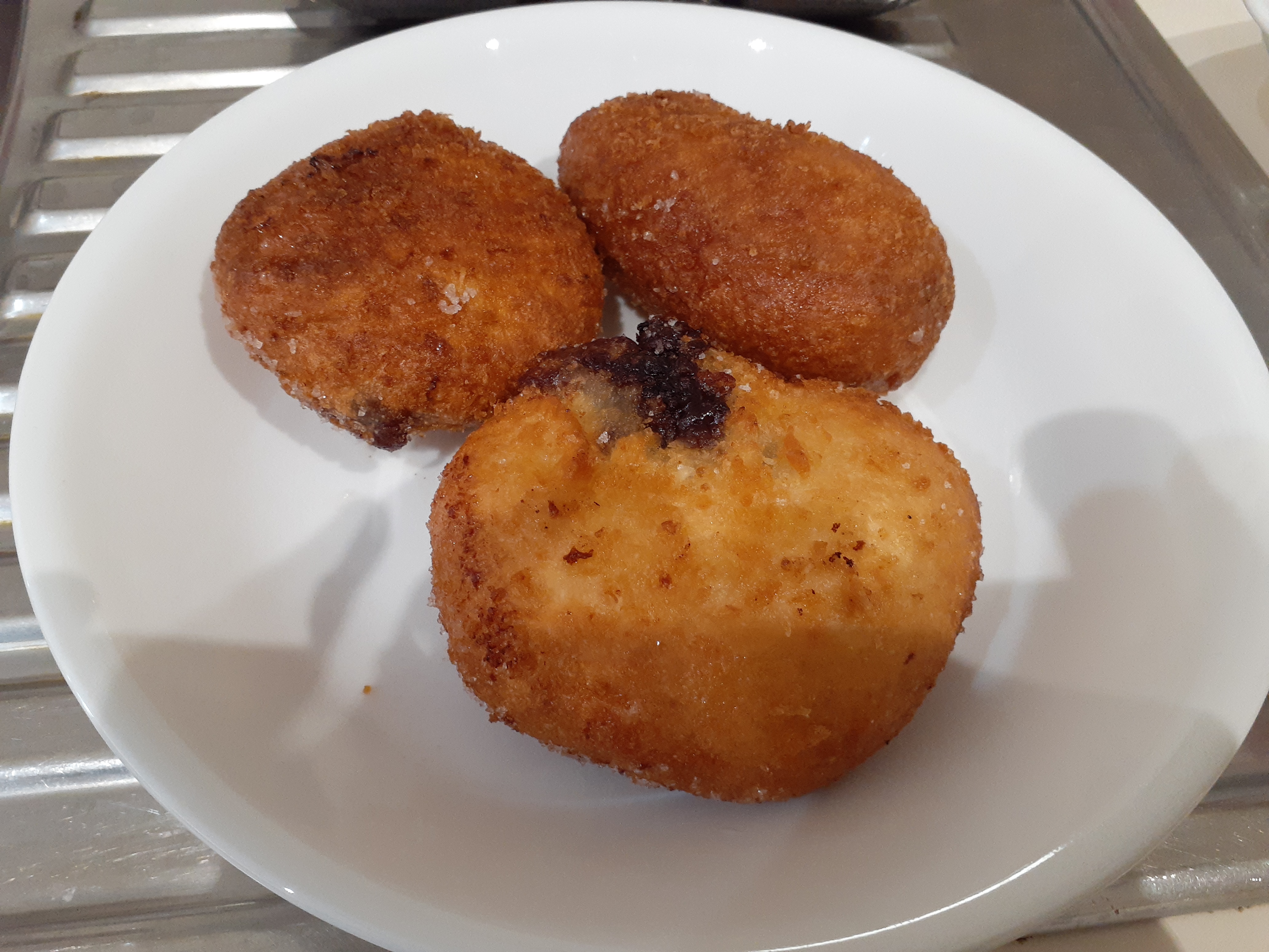 남은 반죽에 팥도넣고 빵가루 입혀 튀겨냄.