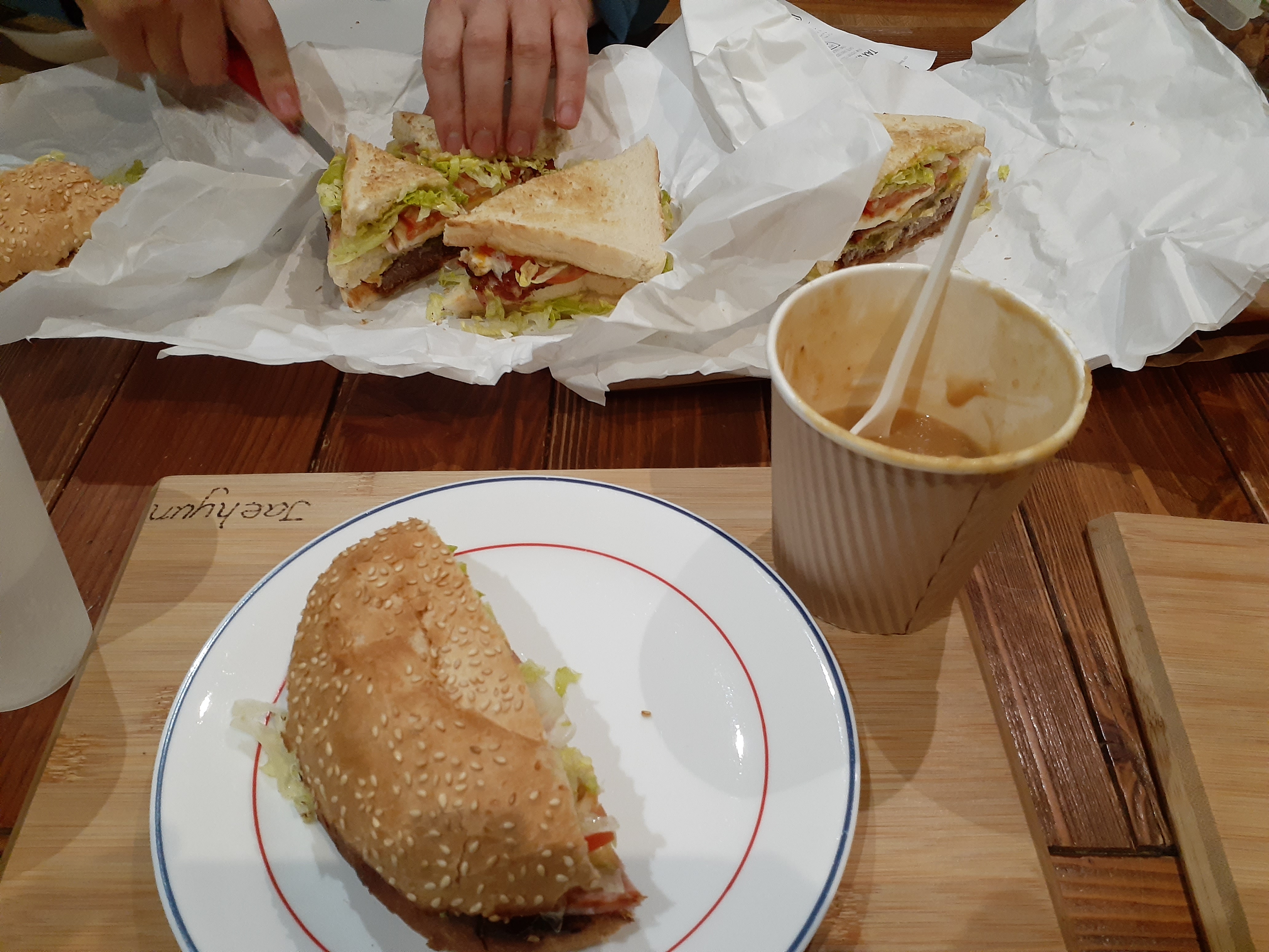 재현아빠 아스파라거스 모종사러 북쪽 올라갔다가 길포드 들러서 사온 샌드위치.햄버거 그리고 콩스프.