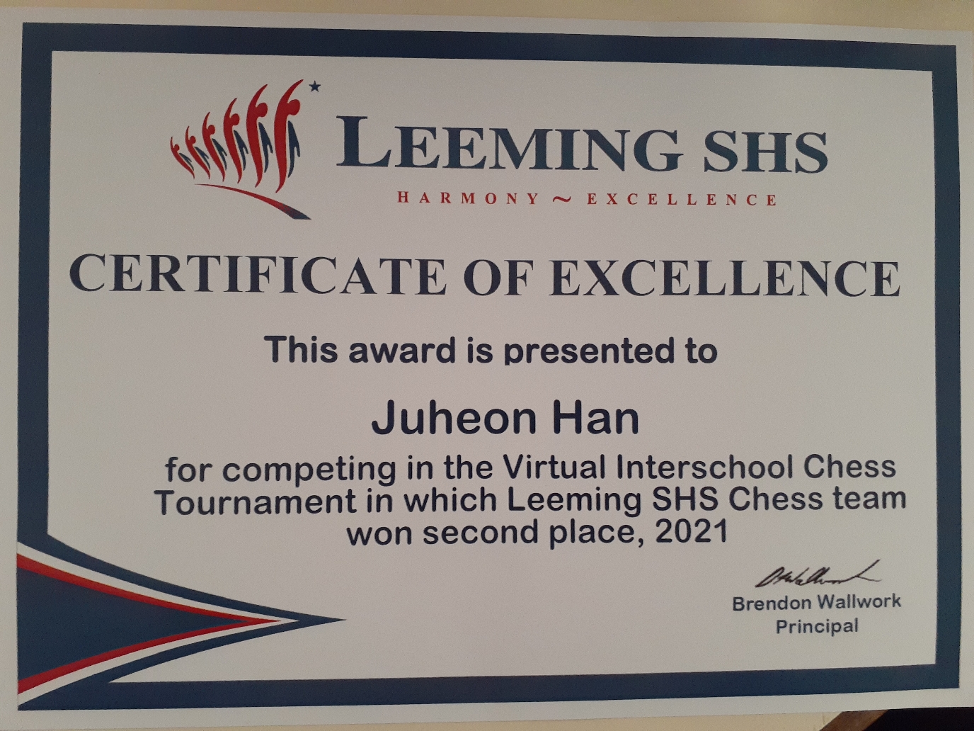 주헌이 체스 상장받음.