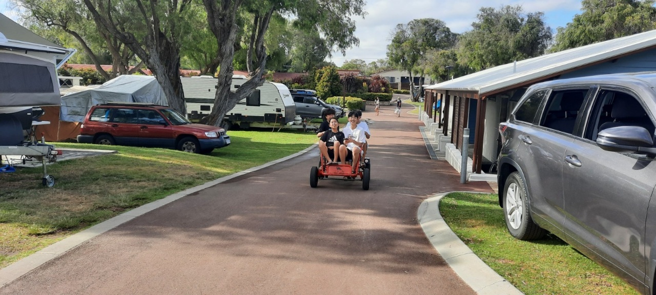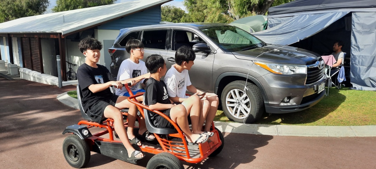 점심 거하게 먹고 아들들은 카라반파크 내에서 4명 카트타기.