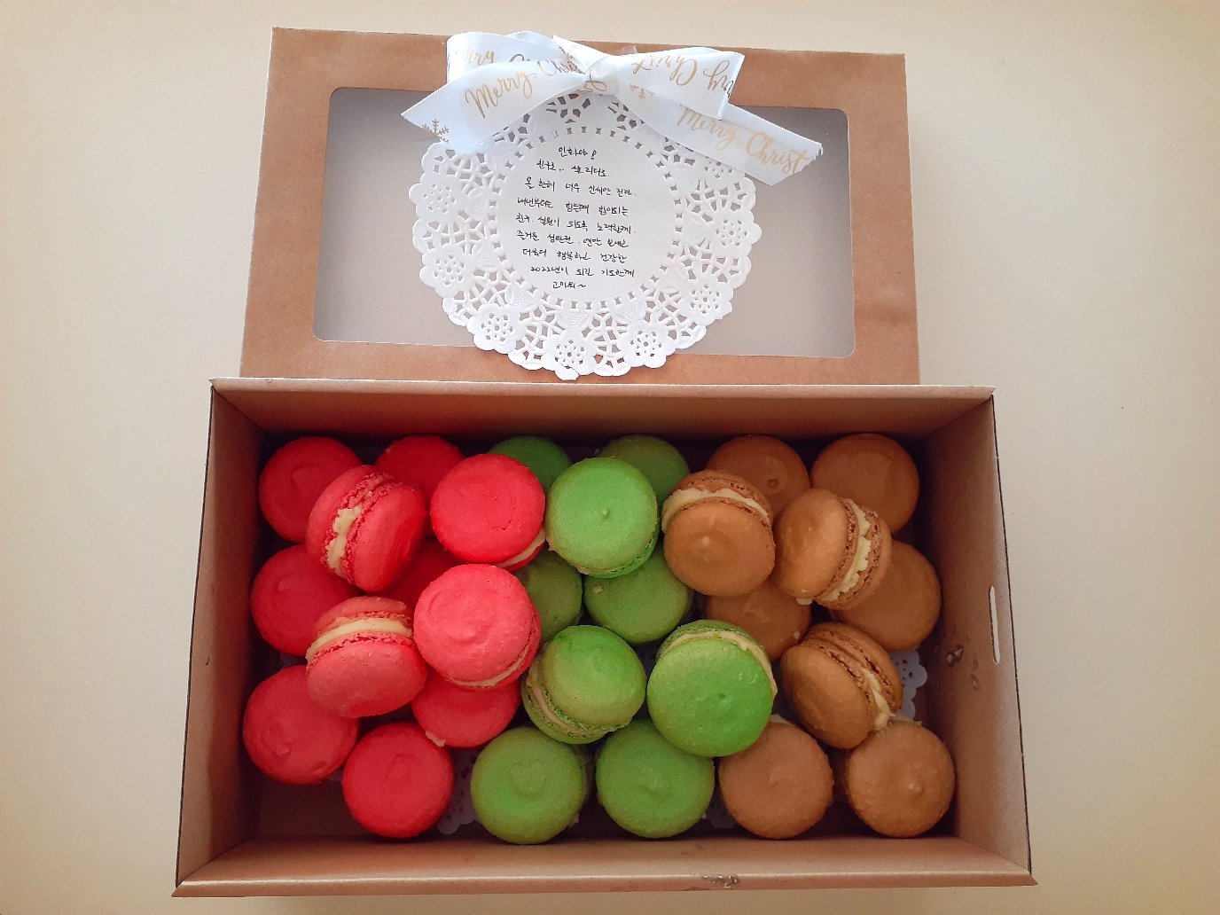 친구에게 선물받은 수제 마카롱과 성탄 선물.