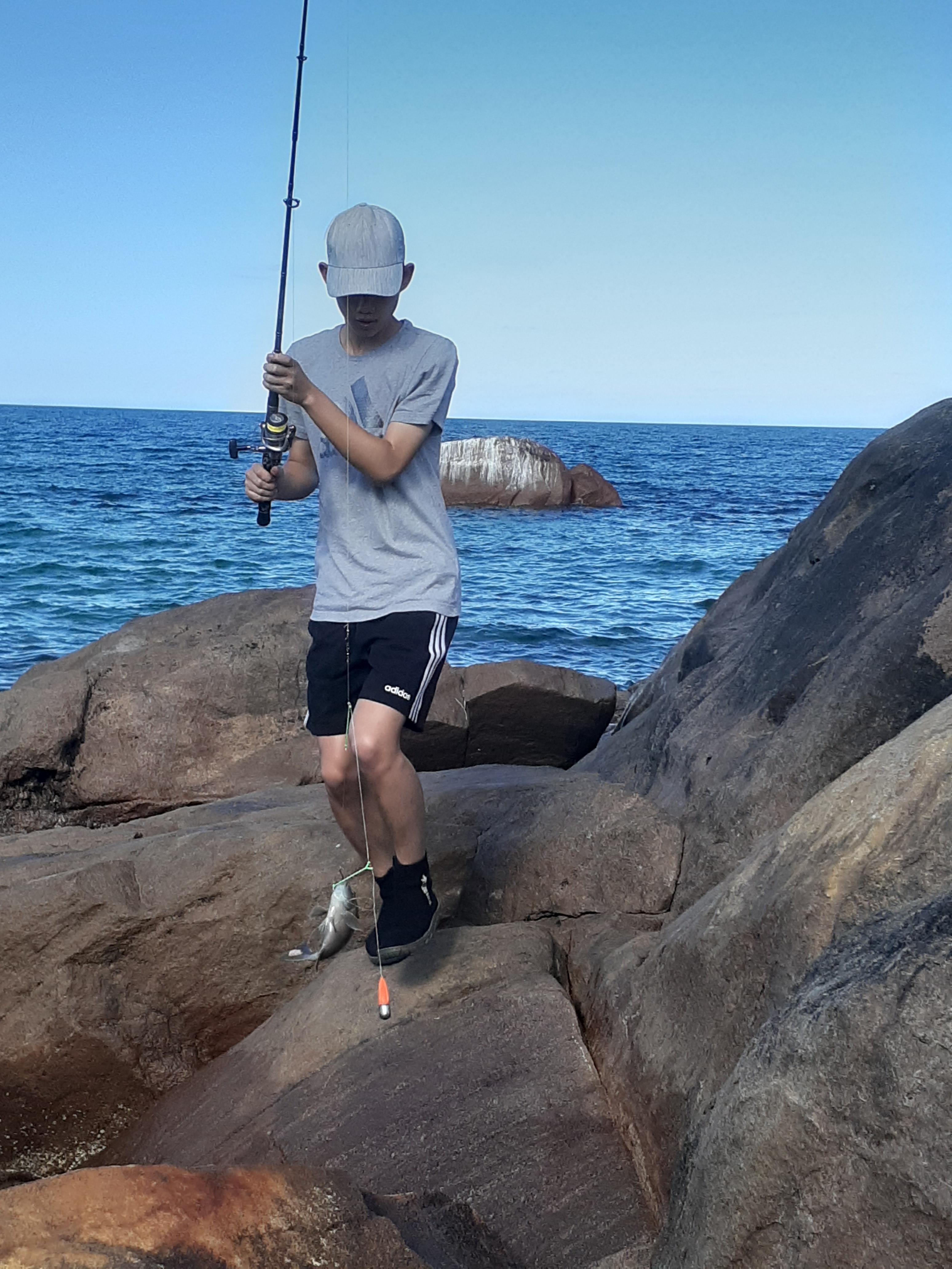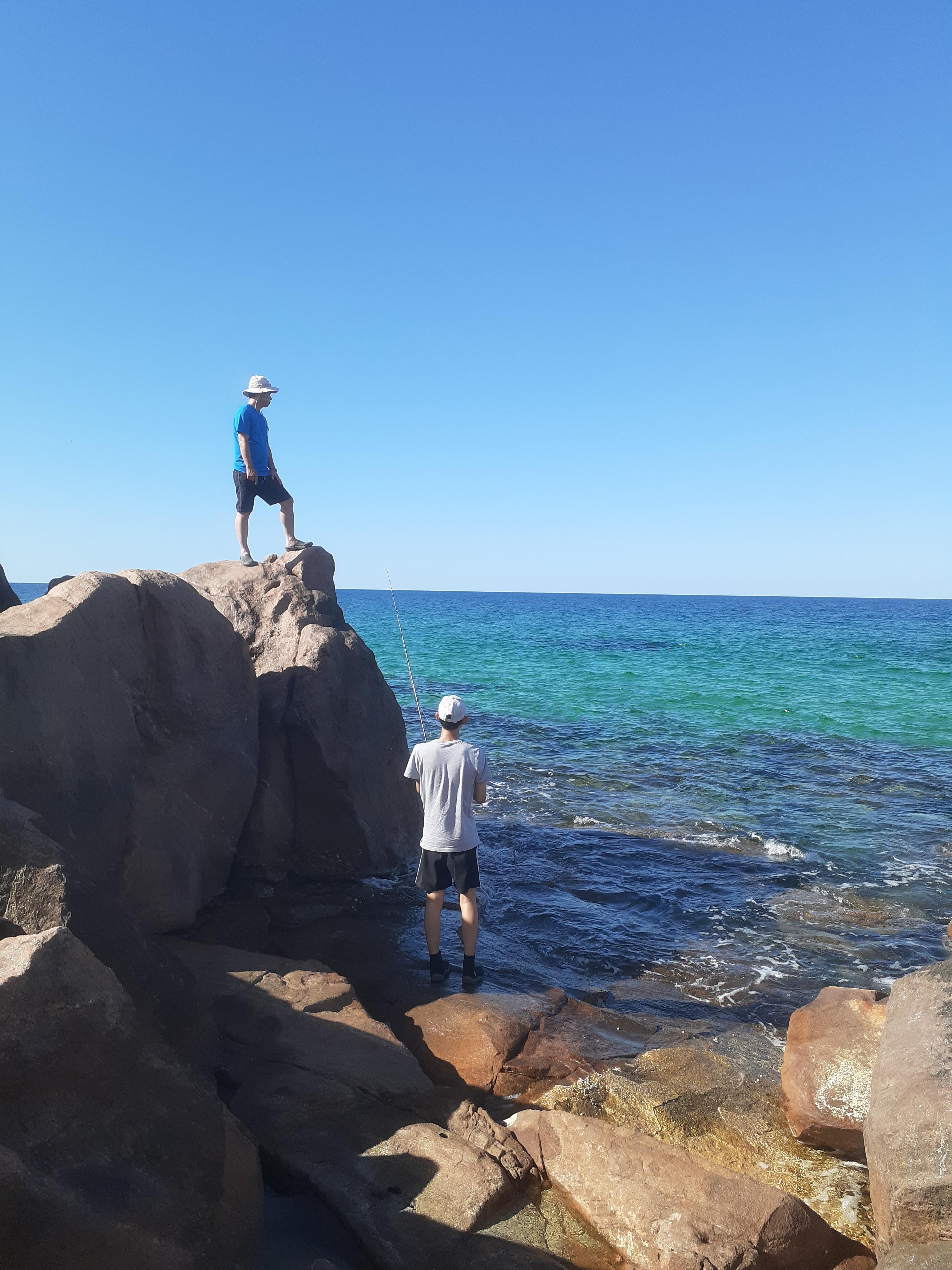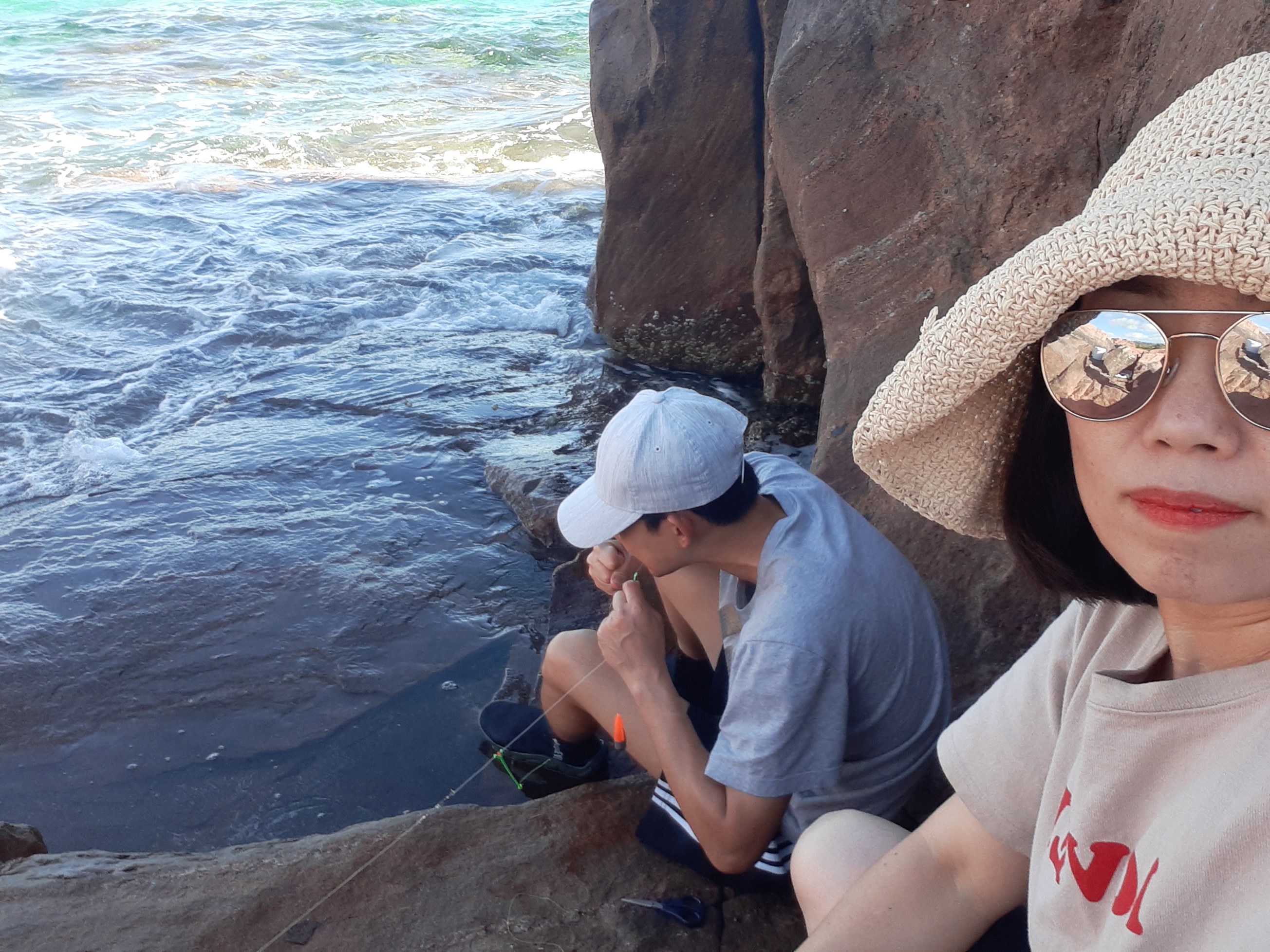 주헌이는 오늘 손맛이 별로인지 일찌감치 낚시대 접고 바위위에서 일광욕 중.