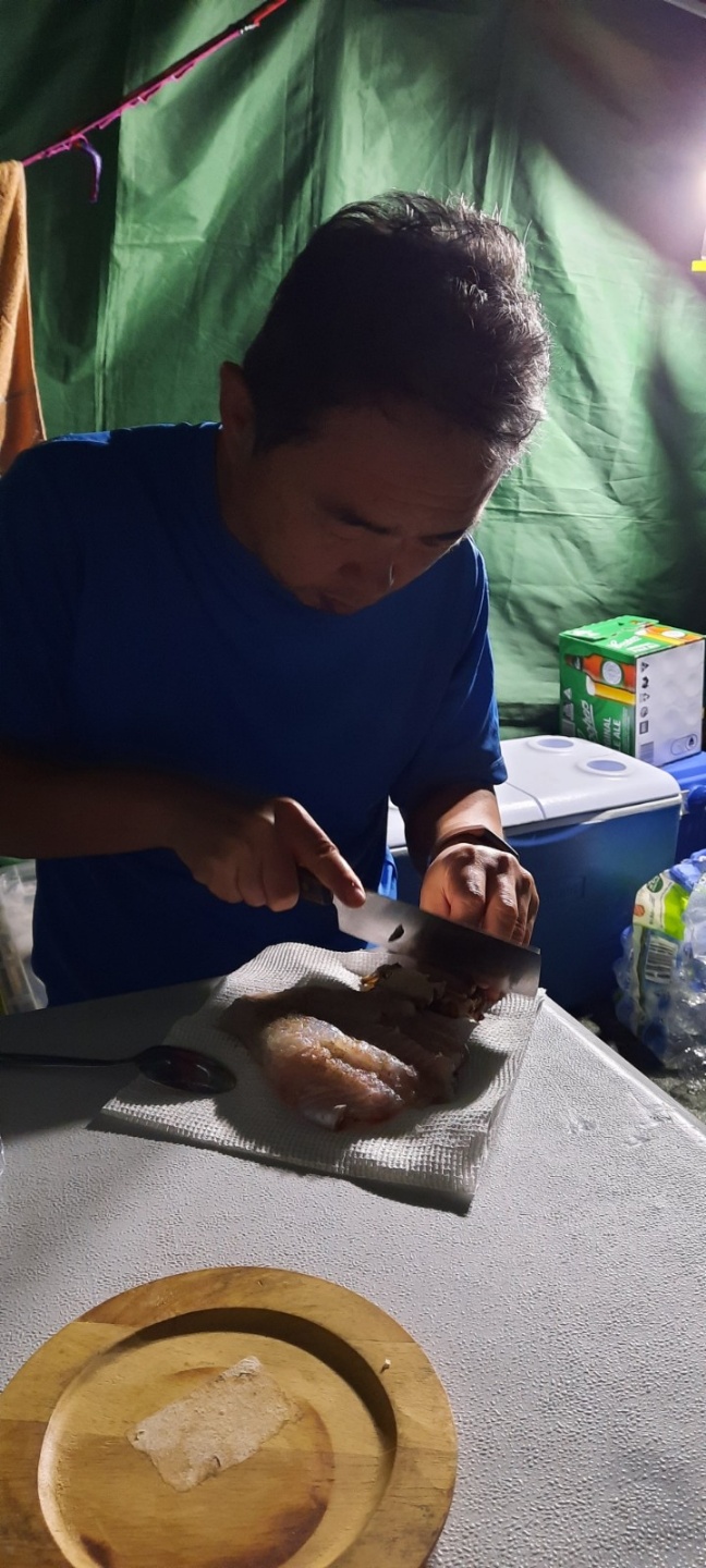 새우 미끼 준비하는 재현아빠.