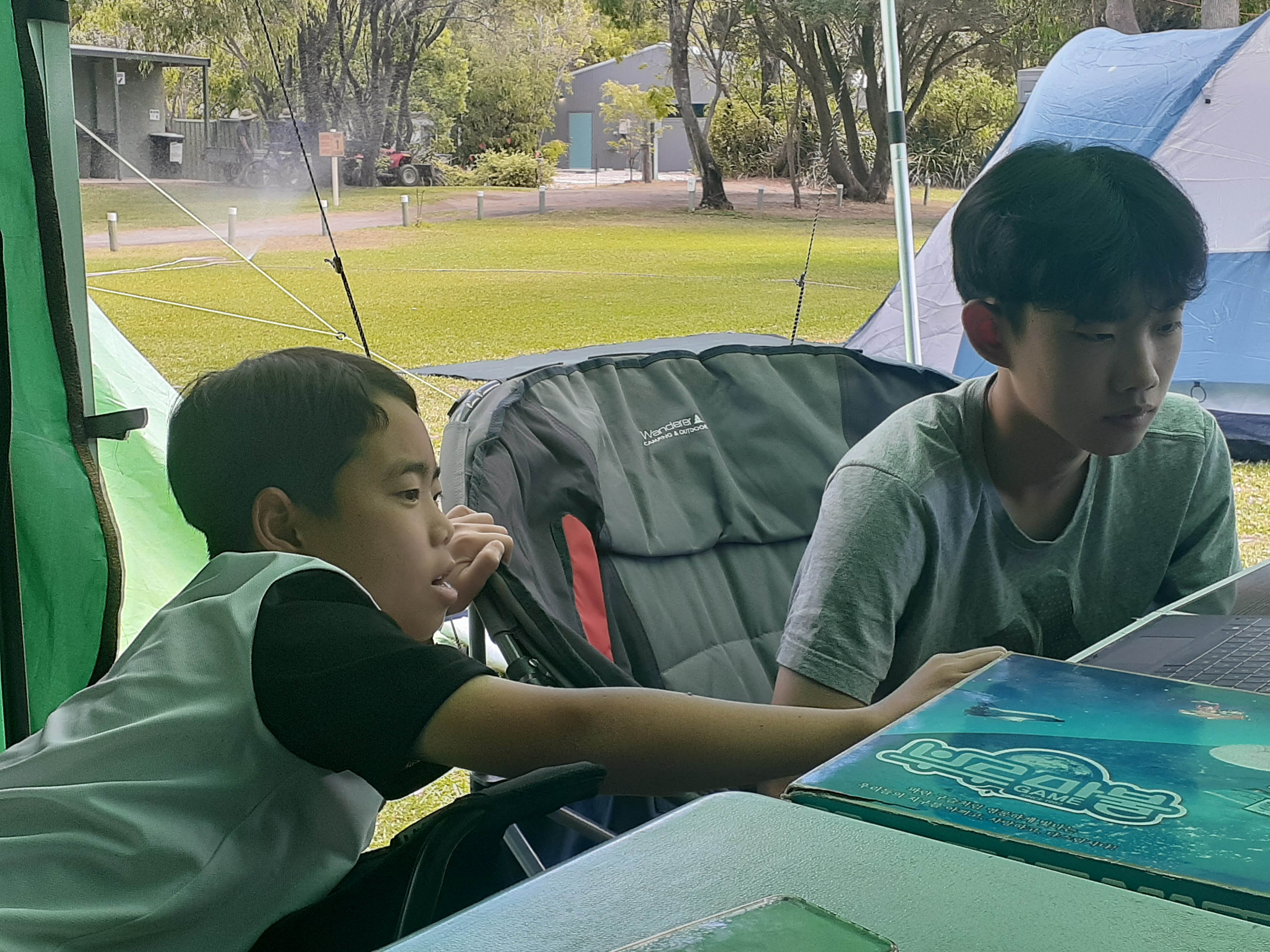 지웅이는 아직도 낚시대 손질중.