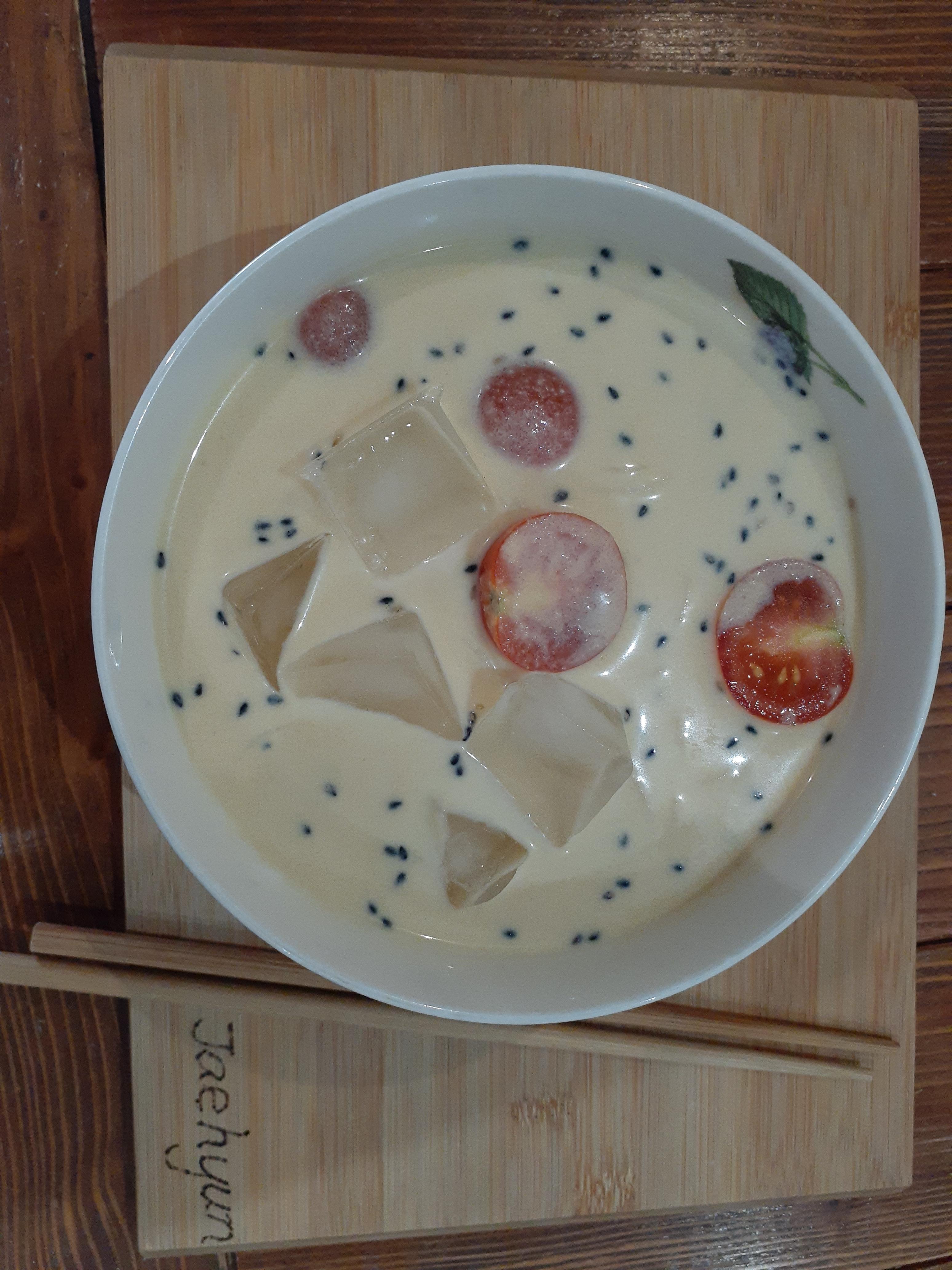 콩국수 가루에 얼음.물 추가해서 간단히 고명만 올려서...