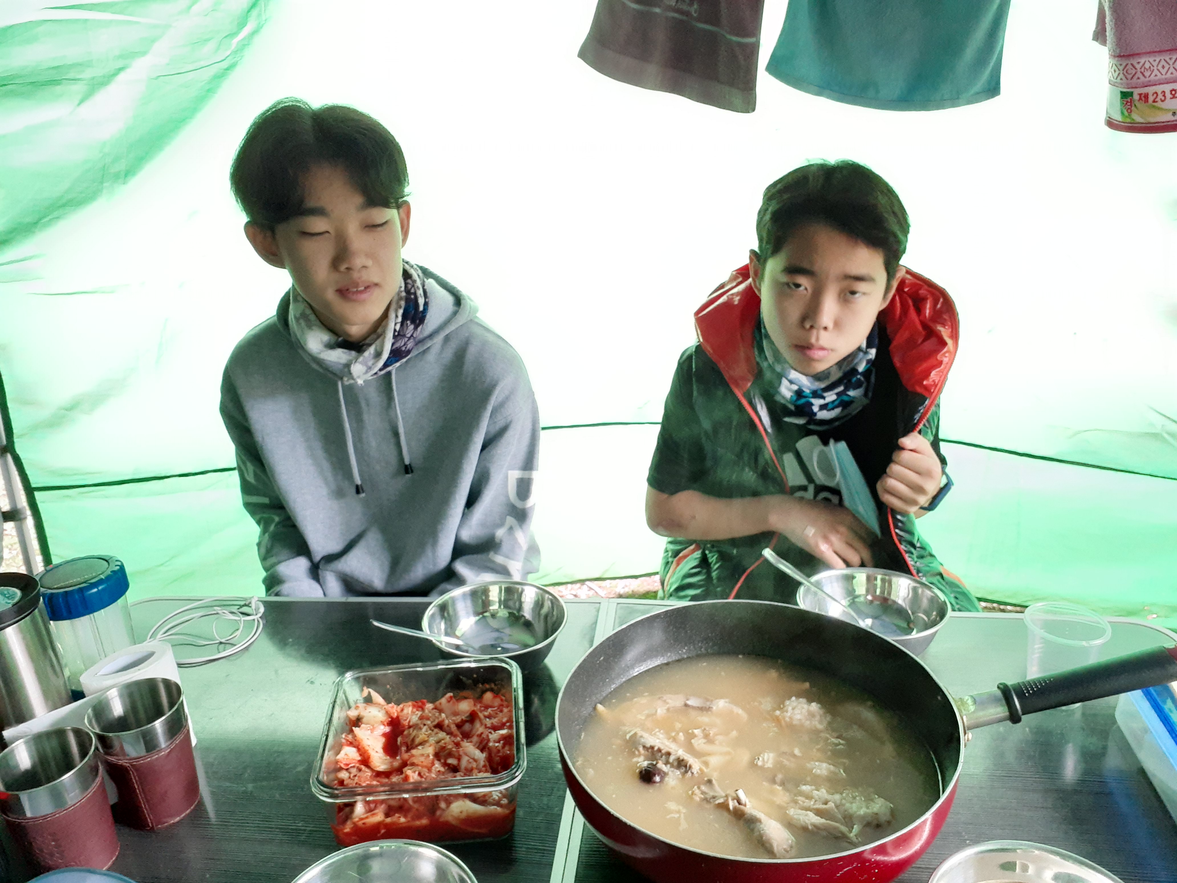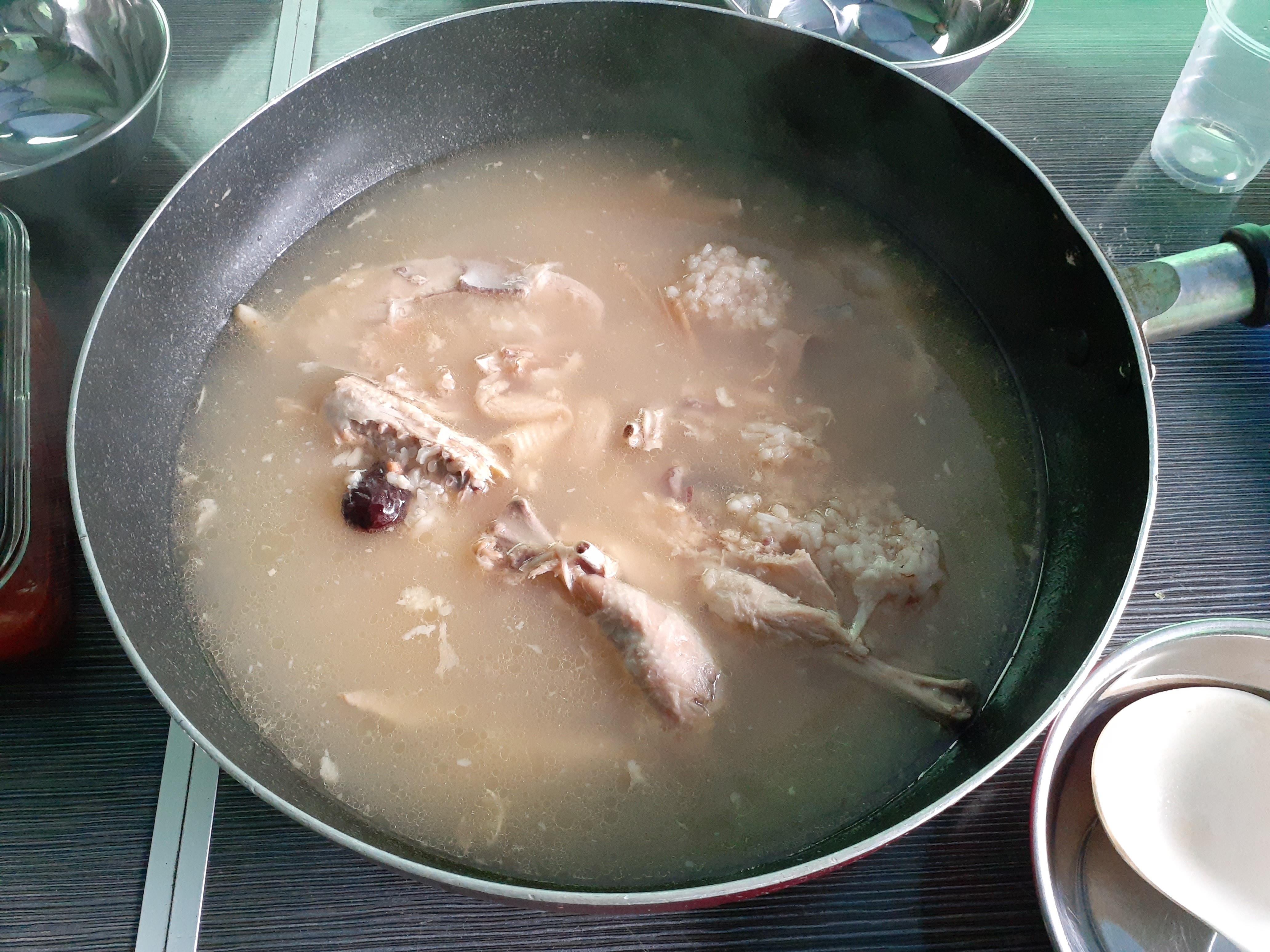 미니닭 한마리씩 들어있는 삼계탕 완제품 두봉 끓여서 트램 타기전 간단 점심.