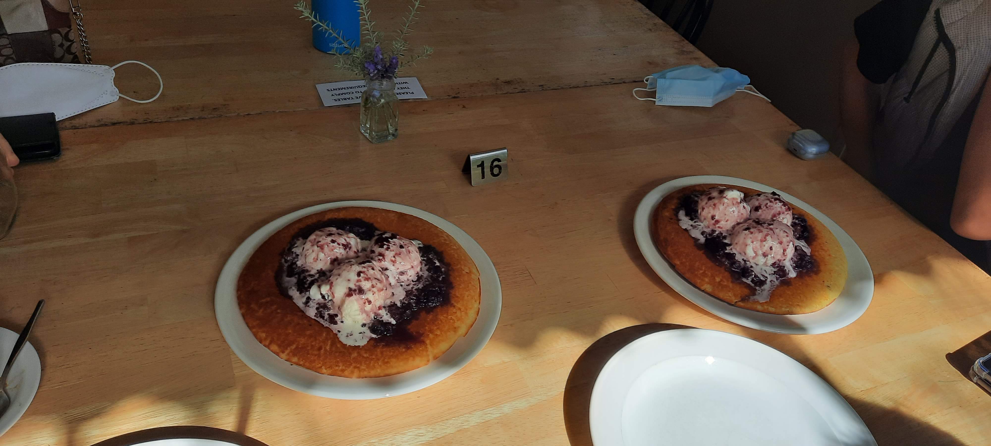 완전 크다. 바닐라아이스크림에 직접만든 베리잼 올려짐. 기대~~~