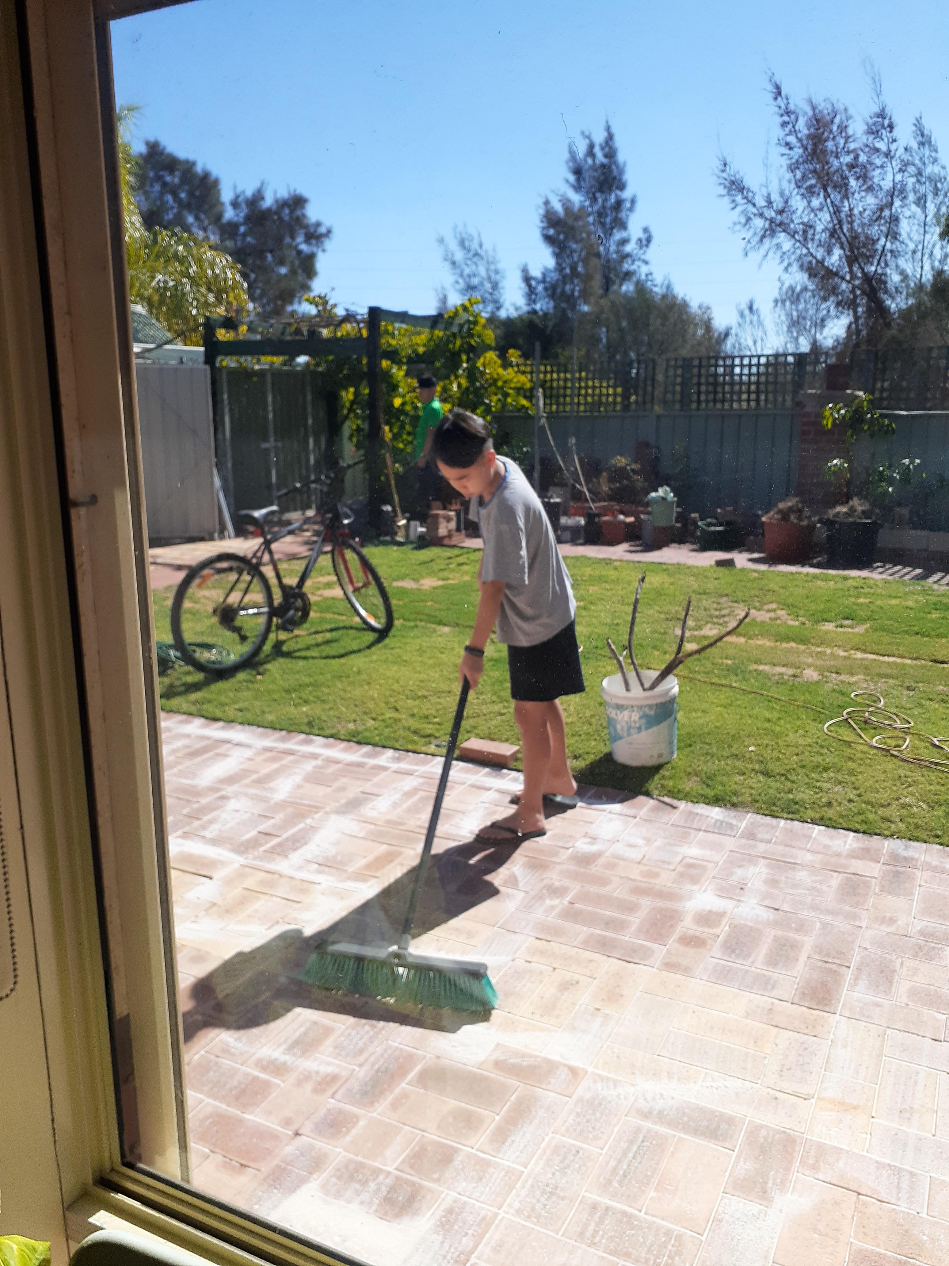 주헌이는 재현아빠 도와서 뒷마당 정리