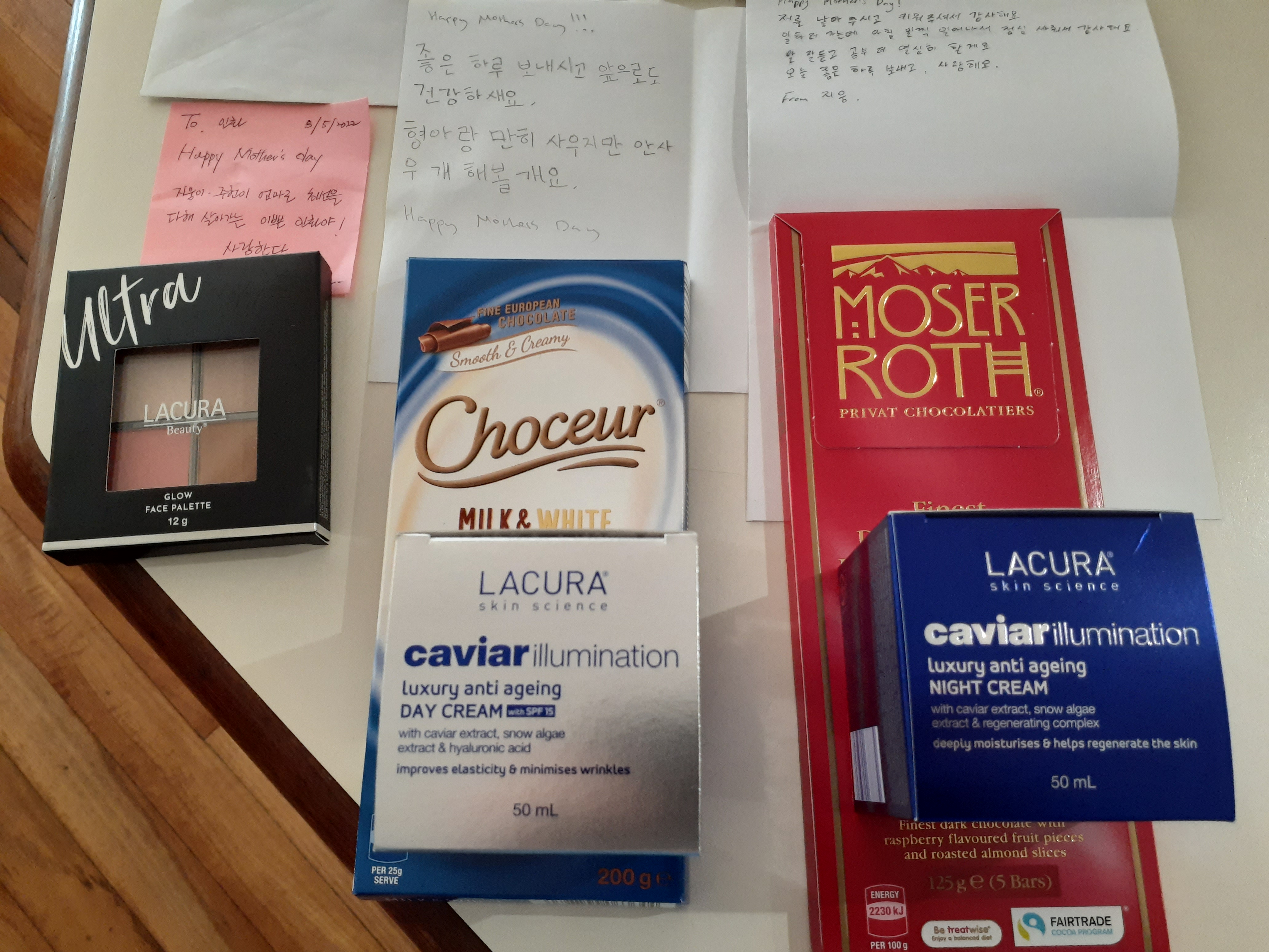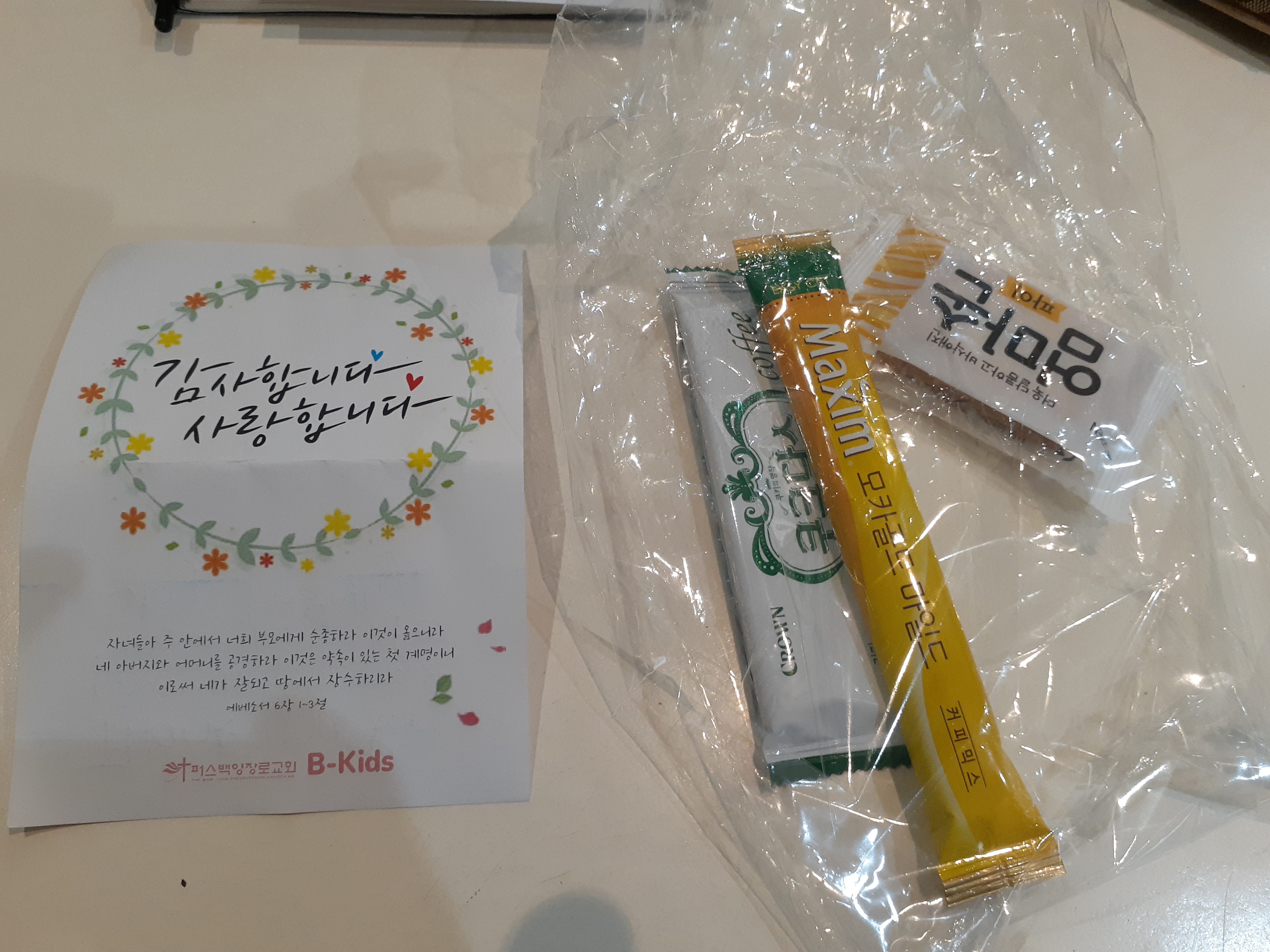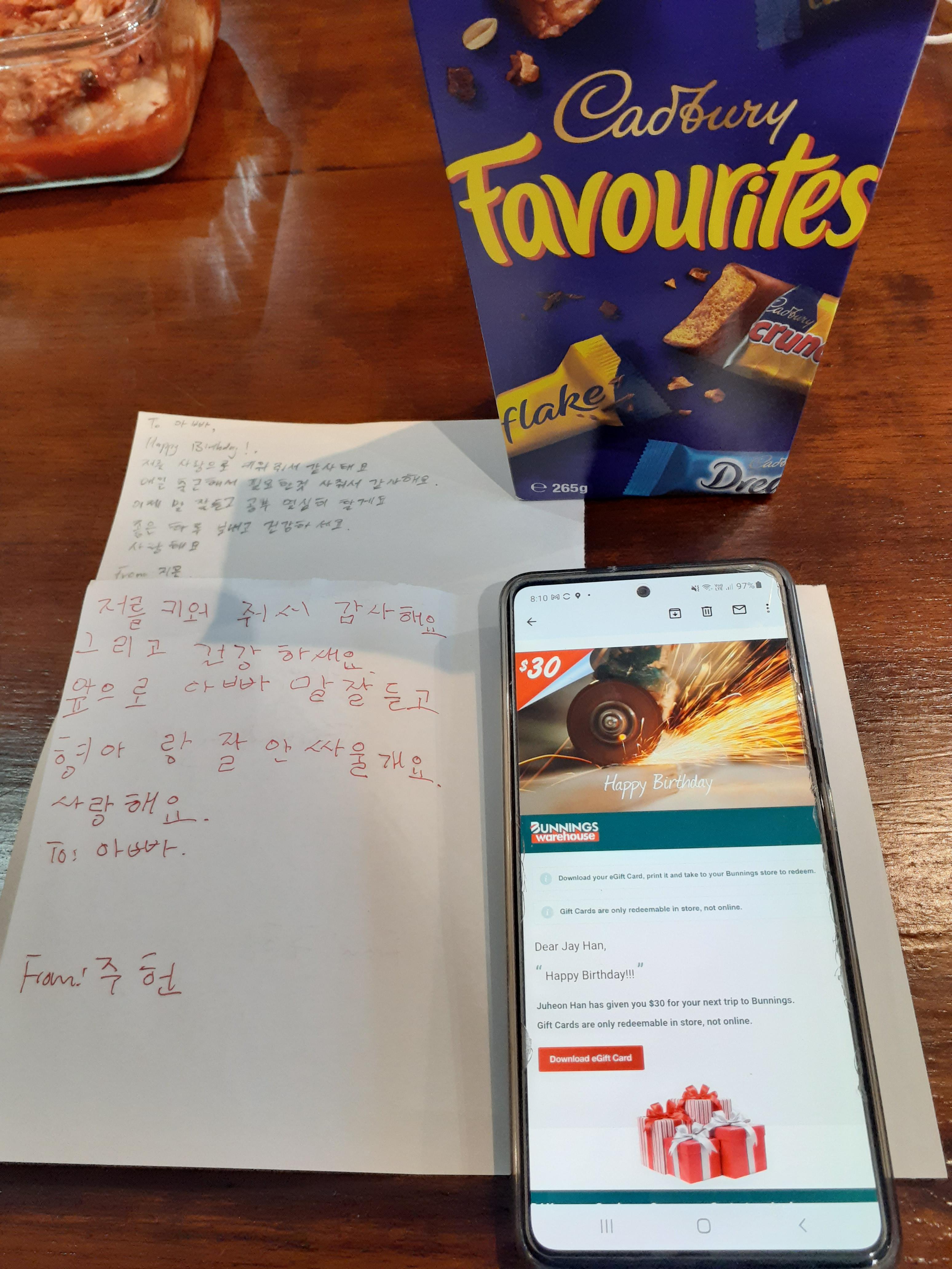 주헌이는 버닝스(호주 큰 철물점) 카드 지웅이는 초콜릿