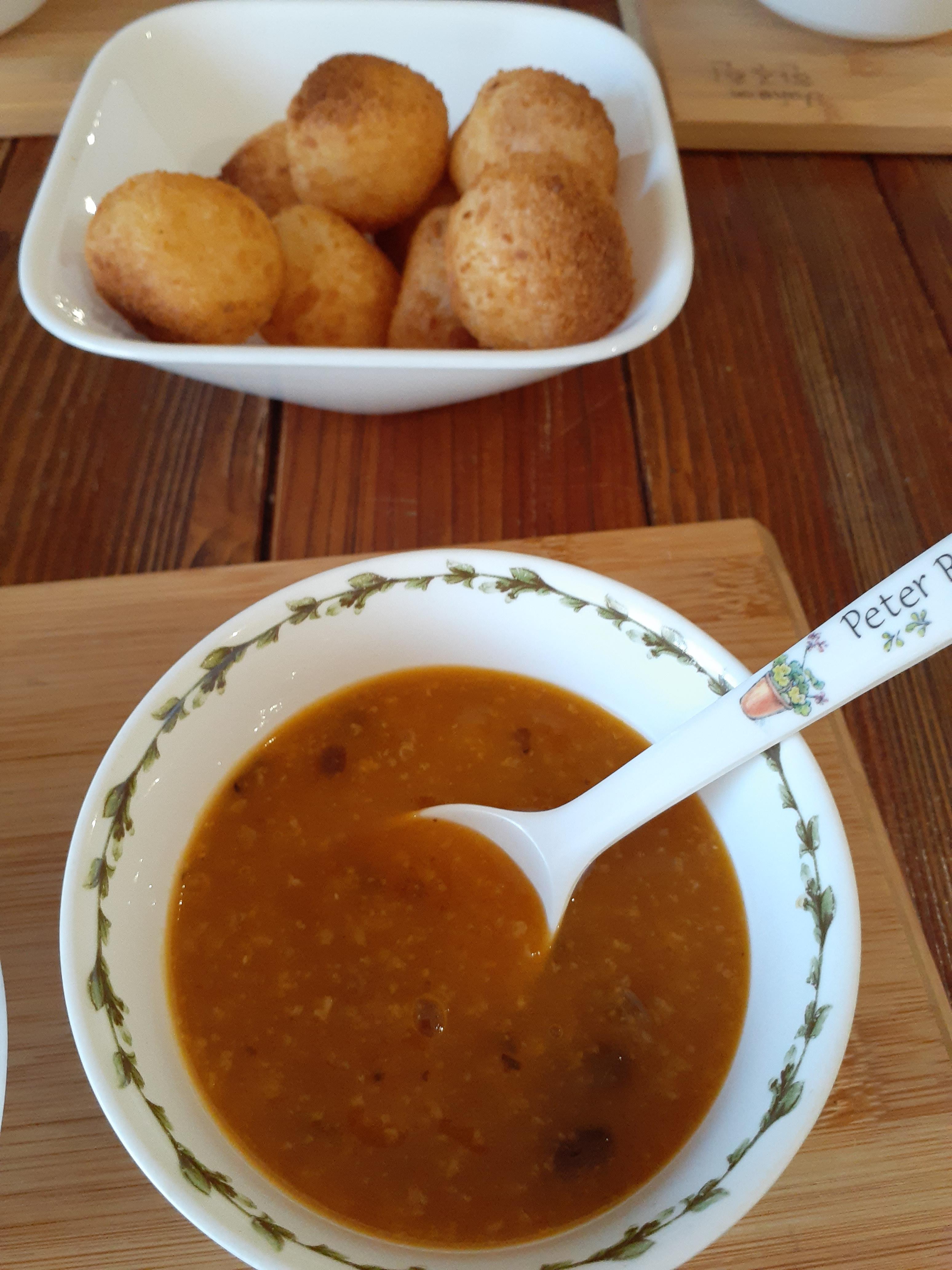 간식. 호박죽과 쫀득치즈볼