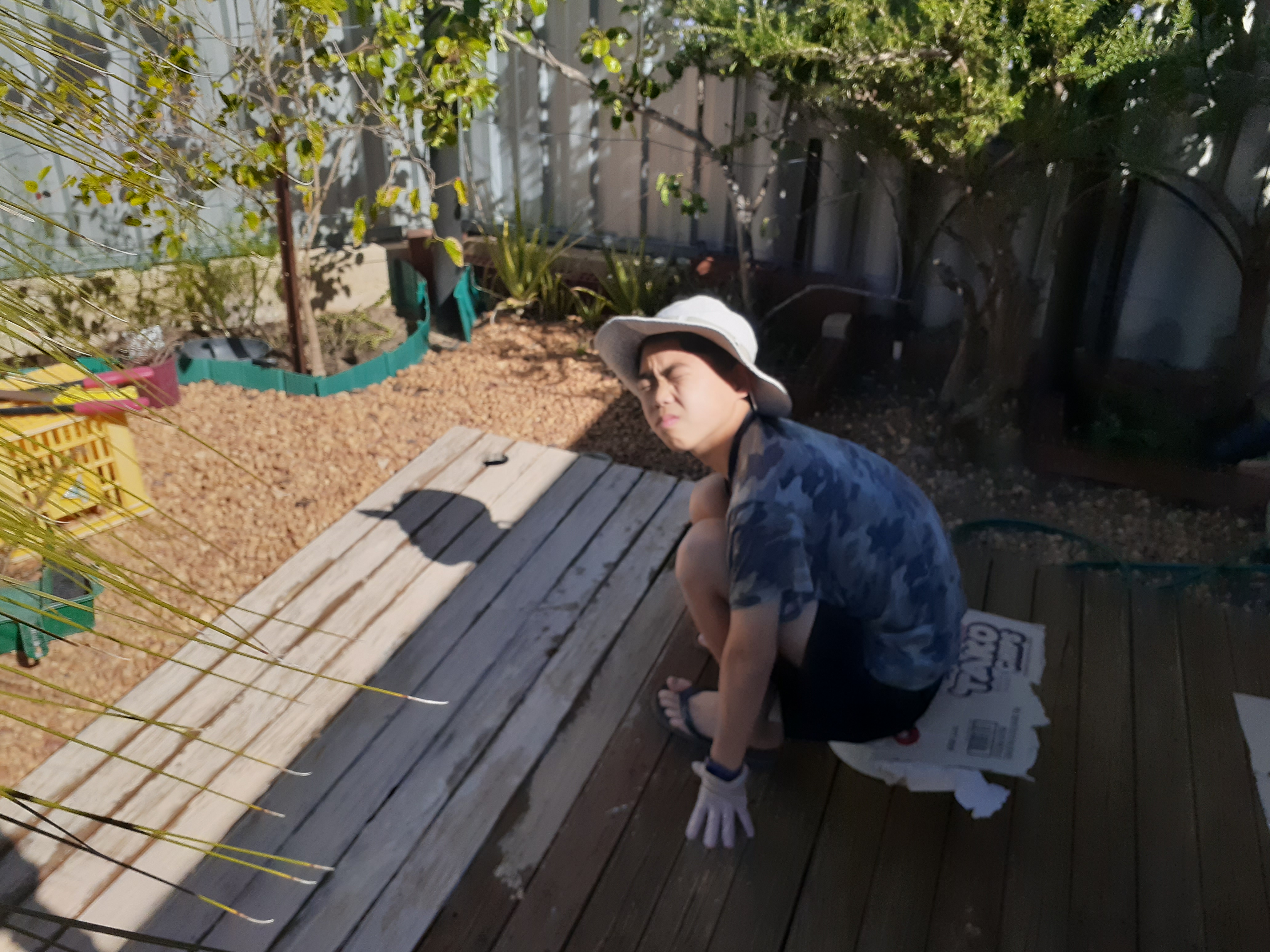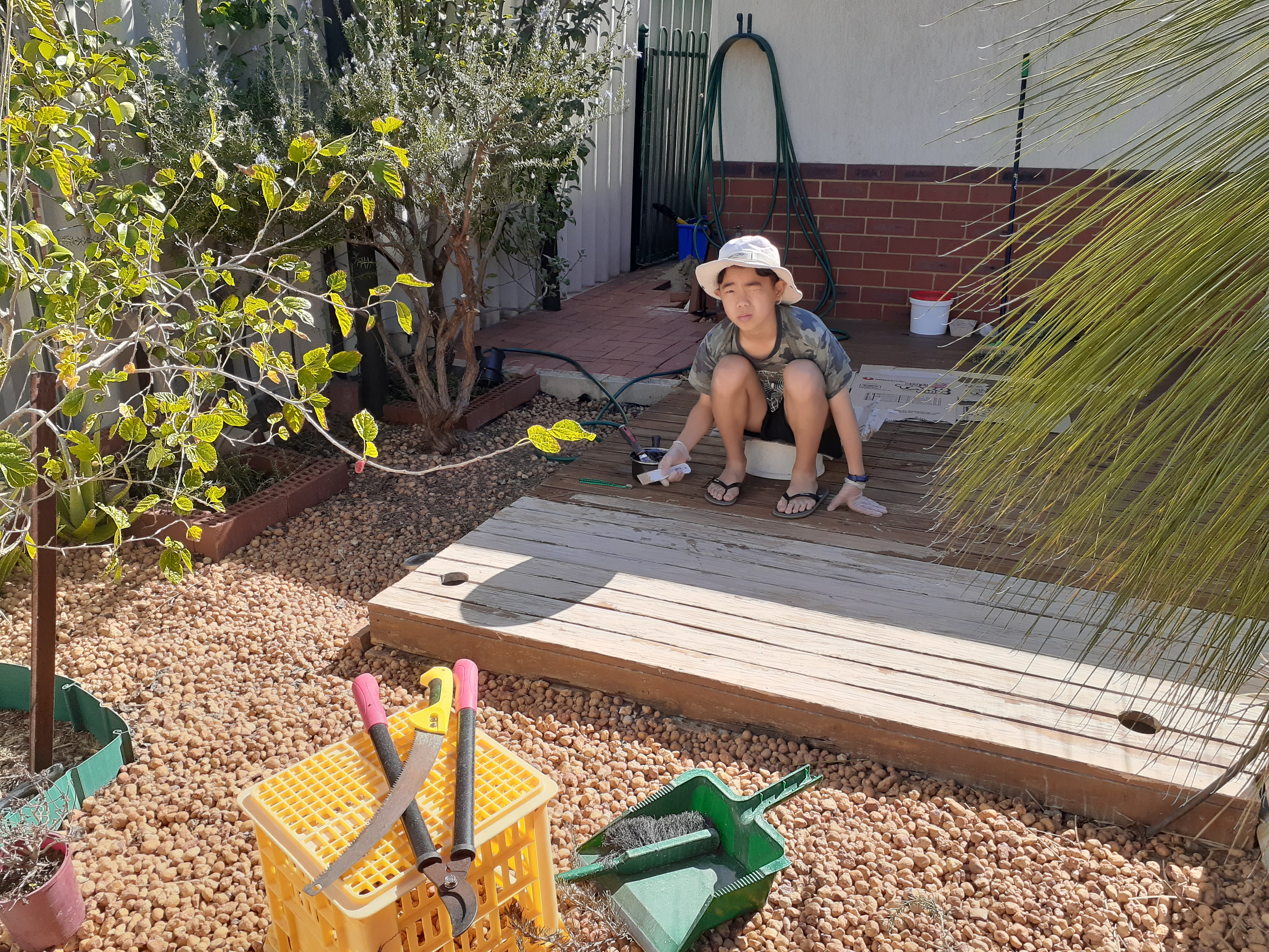 재현아빠 도와서 앞마당 데크 갭 메우기.