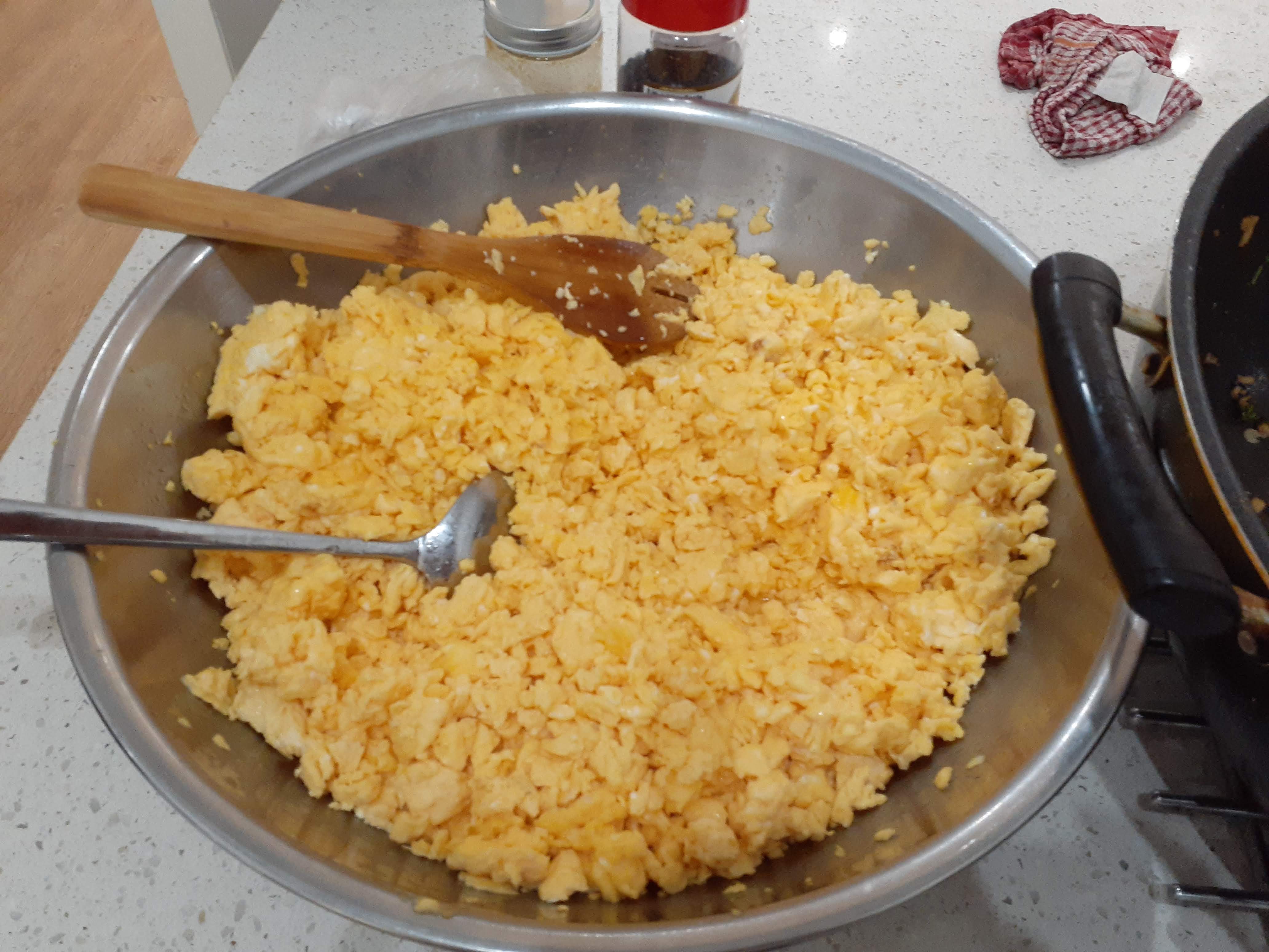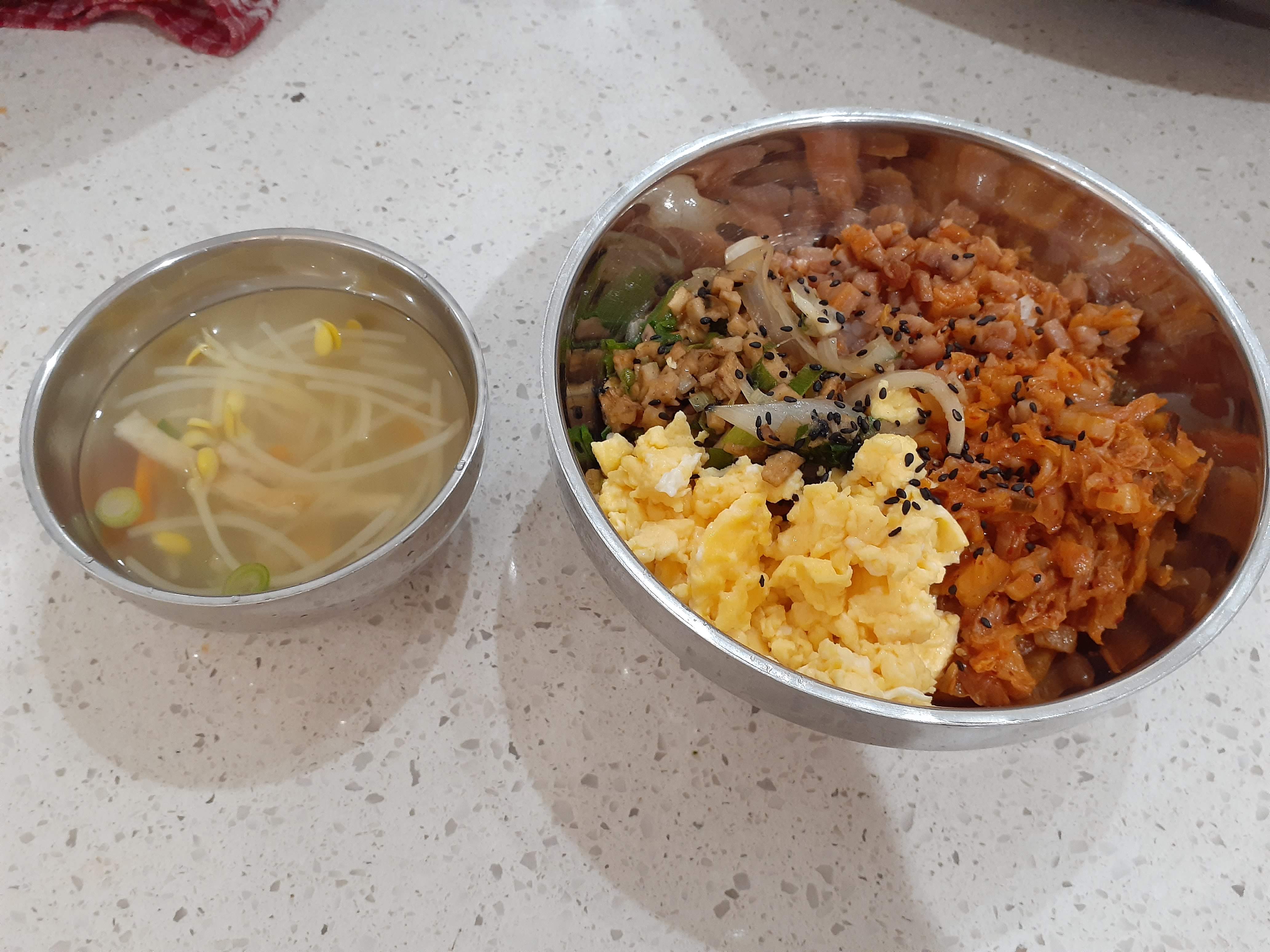 애들 좋아하는 스팸,김치볶음,어묵볶음,스크램블 에그 덮밥과 콩나물국