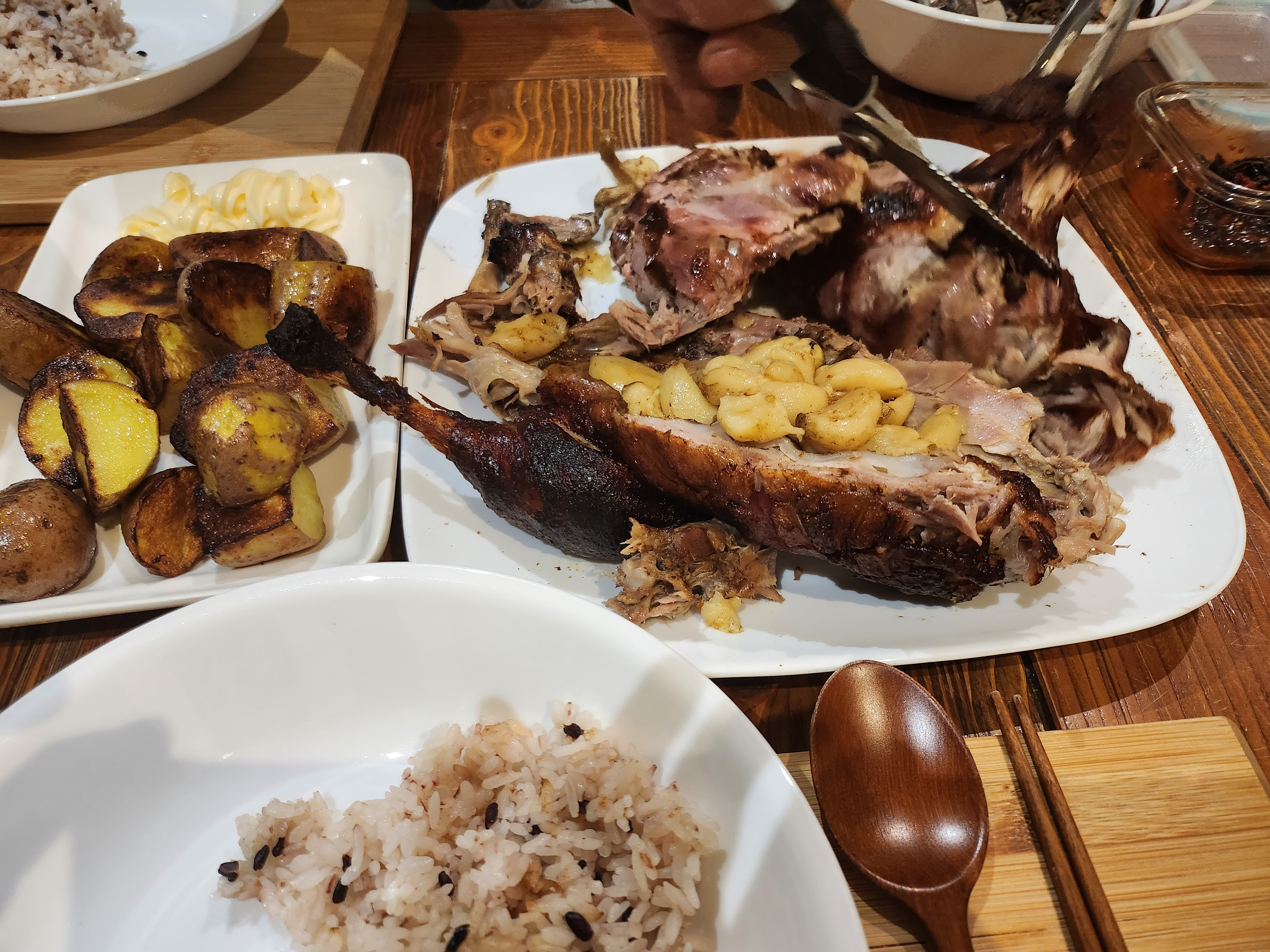 재현아빠 백년만의 바베큐 기계 청소 후 야심차게 오리 통구이 돌리기. 감자가 대박임! 오리 기름에 휴게소 버터구이 감자 못지 않음.ㅋㅋ 오리보다 감자가 더 인기